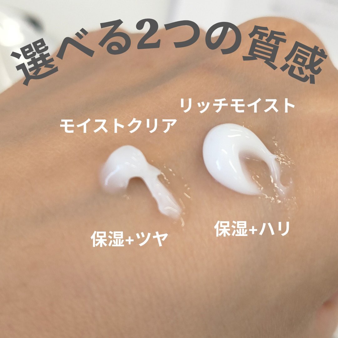 ▼ツヤ肌モイストクリーム 湿潤療法発想のクリーム。角質層内うるっうるにして、マイクロダメージをすばやく、完璧に回復させて、炎症をとめ、再生を促す基本処方(すごすぎ)。伸びが良くて少量で全顔うるおう。 リッチモイストとモイストクリアは処方は同じで使用感の好みで選べるよ🫶