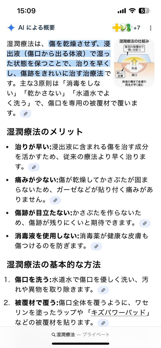 傷を治すために必要な細胞まで殺す消毒液は使わず、水道水でしっかりと洗い流す 傷を乾かさない #かさぶた を作らせない #モイストヒーリング #湿潤療法 news.yahoo.co.jp/articles/f7d29… ジクジク黄色い「滲出液しんしゅつえき」傷を修復する細胞の成長を促す成長因子や、傷を修復するための栄養分が豊富 x.com/AeraKids/statu…
