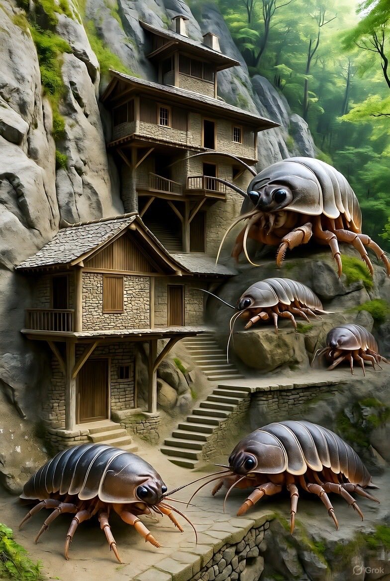【AI無駄使い2】 こんどは人類が滅亡した後の地球でオオグソクムシが文明を築いている様子を絵にしてもらったぞ❗️ ダンゴムシじゃん💦 pic.x.com/p5gkmztRZt