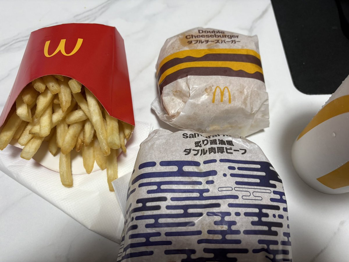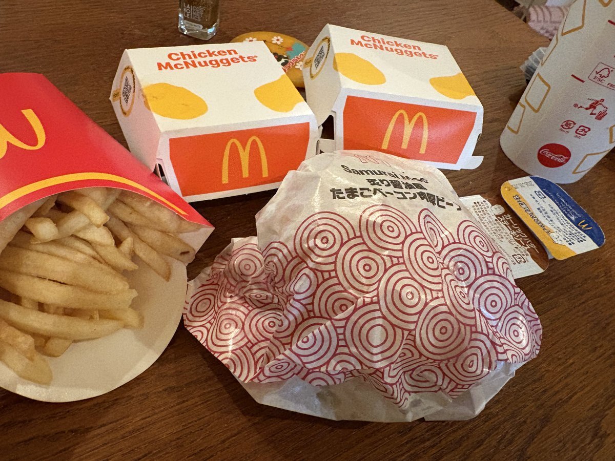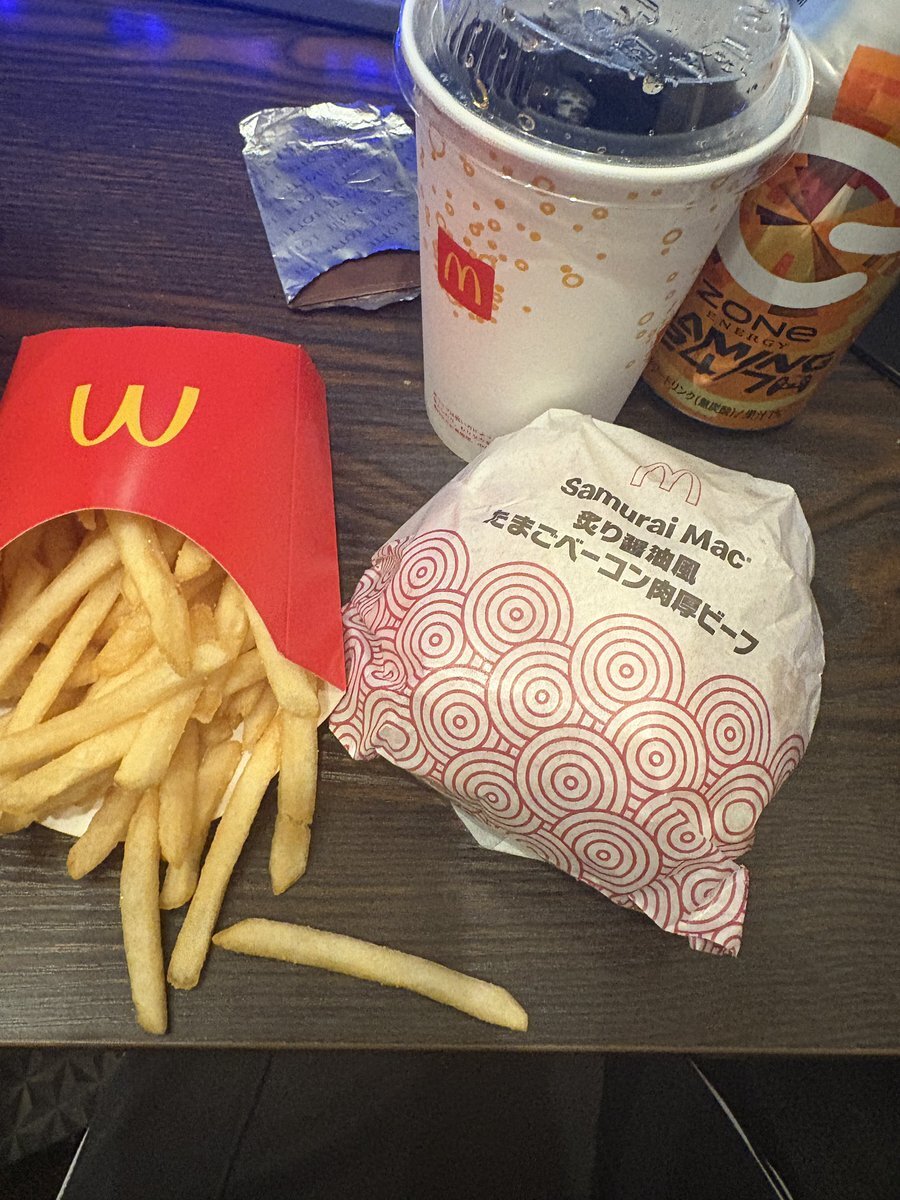 これ肉料理と言っていいのかなんですけど、個人的についこないだ仙台でなぜか急にモスの黒毛和牛のダブルチーズバーガーが食べたくなった、っていう流れからの、マクドでのサムライマック、炙り醤油風たまごベーコン"肉厚ビーフ"です。ゔぃーぱぺやえさんにも味わっていただきました。とっても満腹感が pic.x.com/rCINB3ykIN