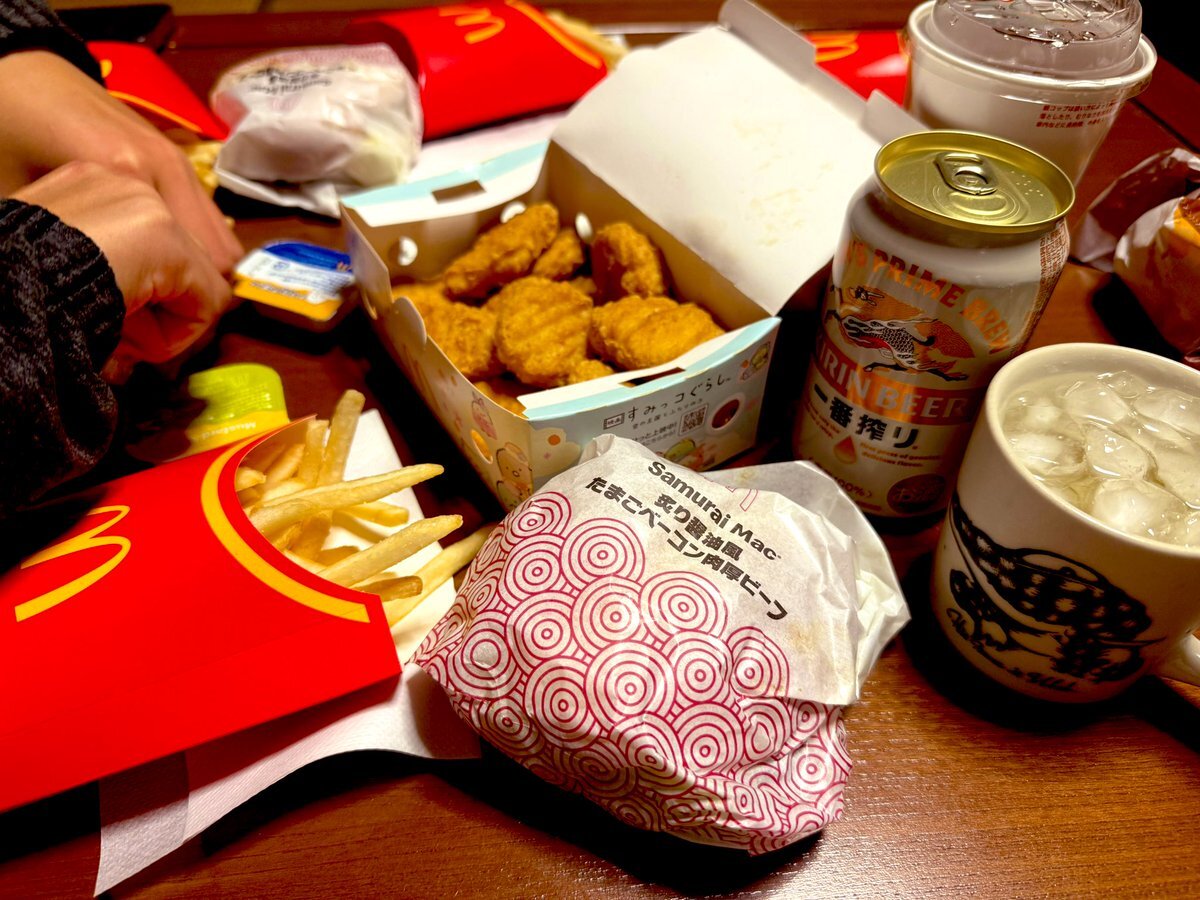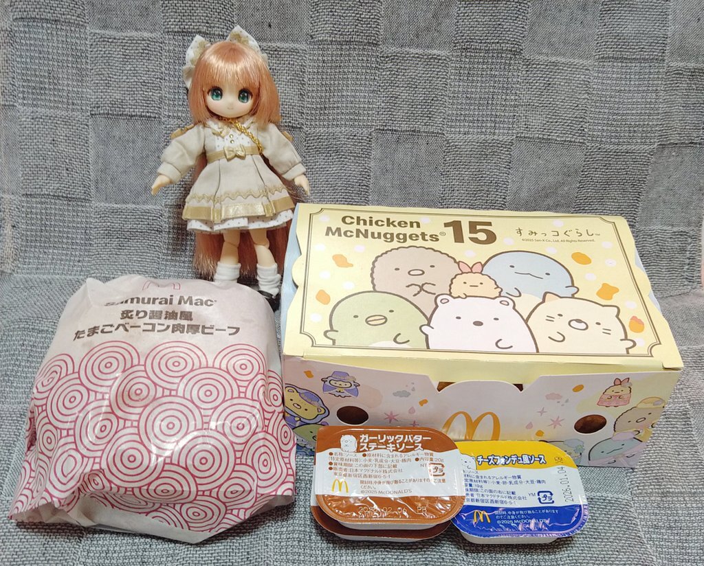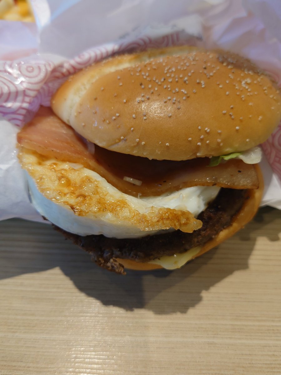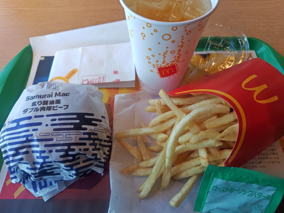 これ肉料理と言っていいのかなんですけど、個人的についこないだ仙台でなぜか急にモスの黒毛和牛のダブルチーズバーガーが食べたくなった、っていう流れからの、マクドでのサムライマック、炙り醤油風たまごベーコン"肉厚ビーフ"です。ゔぃーぱぺやえさんにも味わっていただきました。とっても満腹感が pic.x.com/rCINB3ykIN