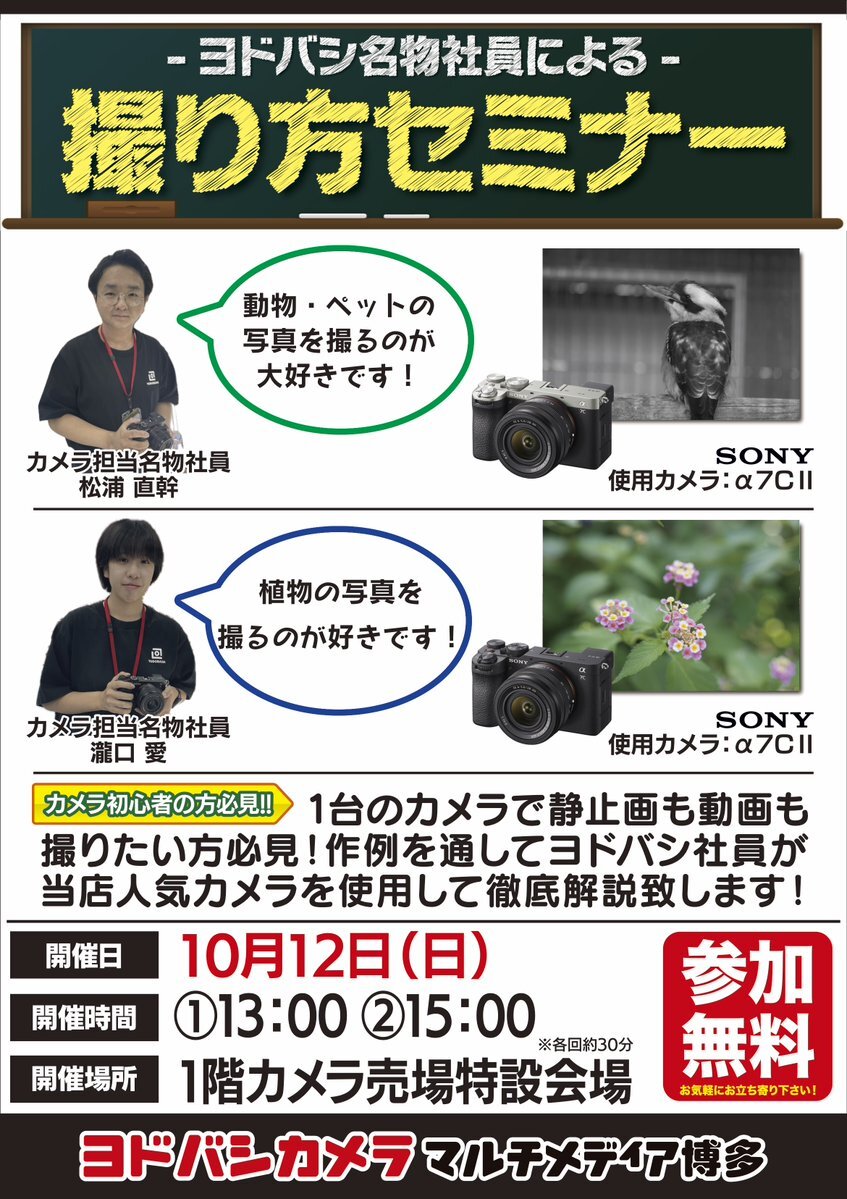 【カメラセミナーのご案内】 カメラ大好き・撮影大好きなヨドバシ社員が、人気の機種を使って印象的な写真撮影のテクニックをご紹介します❗️ カメラ初心者の方にもおすすめ❗️ お気軽にご参加ください😊 🗓️10/12(日) 🕙①13:00~ ②15:00~ 📍1階 カメラ売場特設会場 yodobashi.com/ec/news/200009… pic.x.com/ctvnvJq7m4