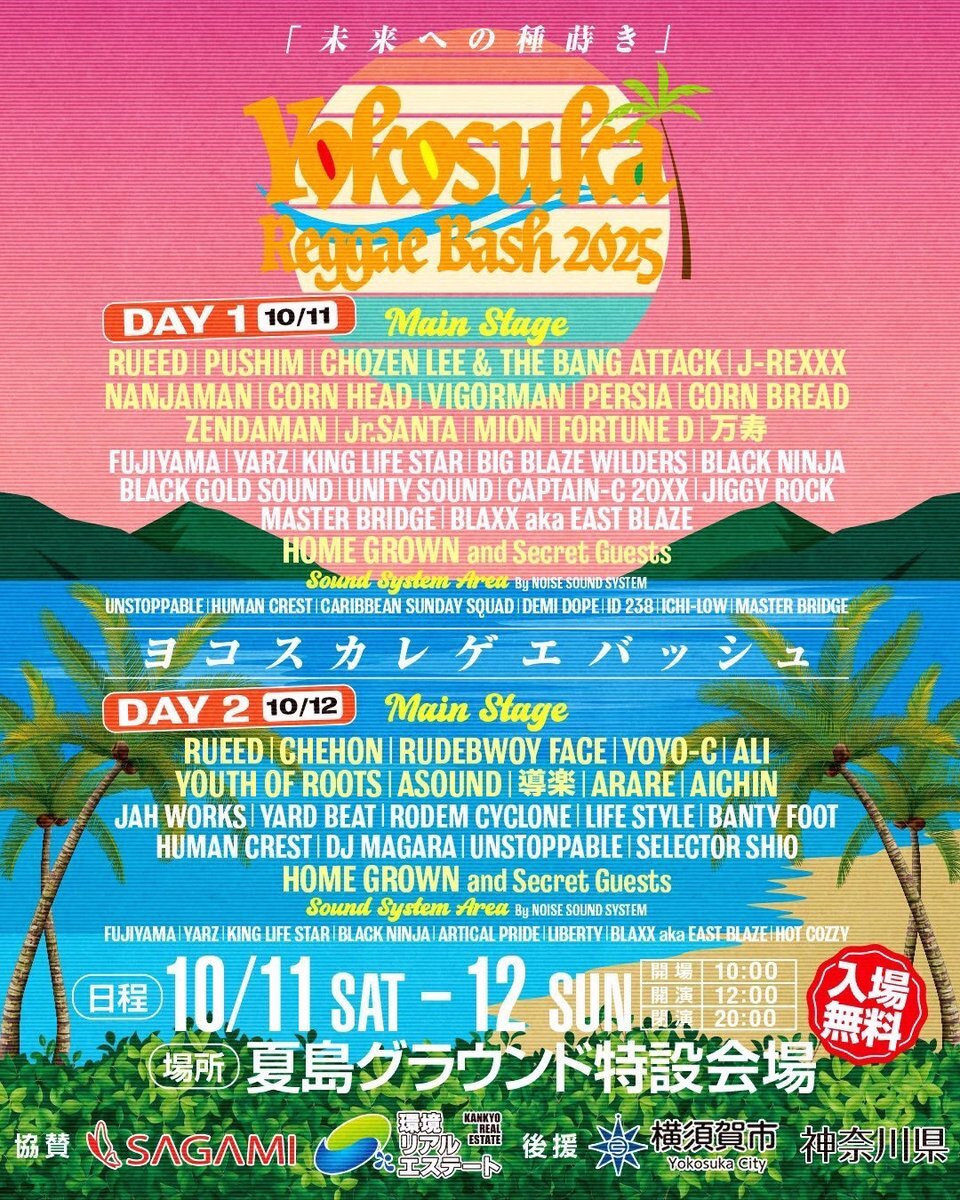 【イベント情報・横須賀】 いよいよ明日から2日間開催‼️ YOKOSUKA REGGAE BASH 2025 2025年10月11日(土)&12日(日) 開場 10:00 / 開演 12:00 / 閉演 20:00 @夏島グラウンド特設会場 入場無料🆓 YARD BEATの出演は2日目になります🙌 ubgoe.com/projects/954 pic.x.com/fJf6qxwhZT