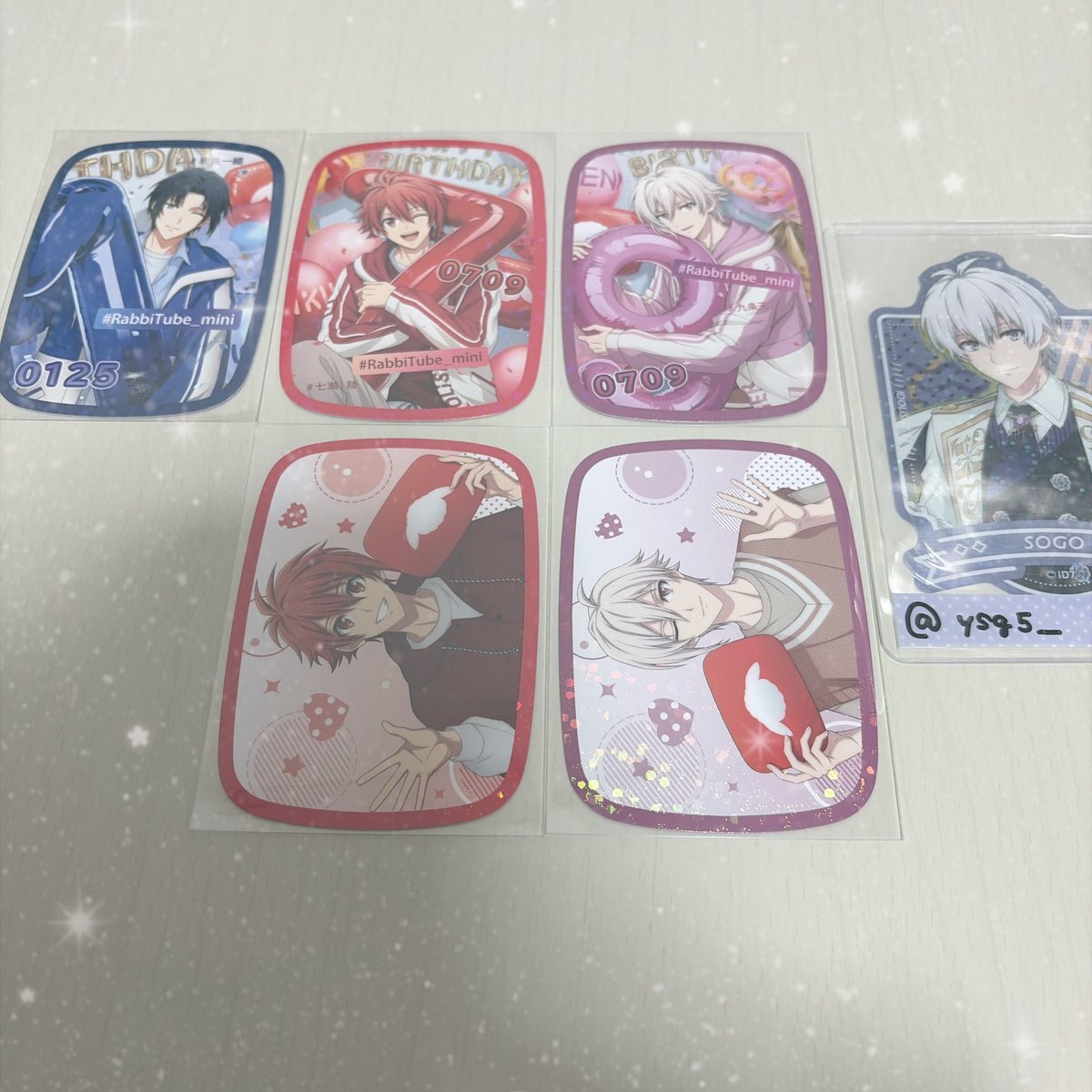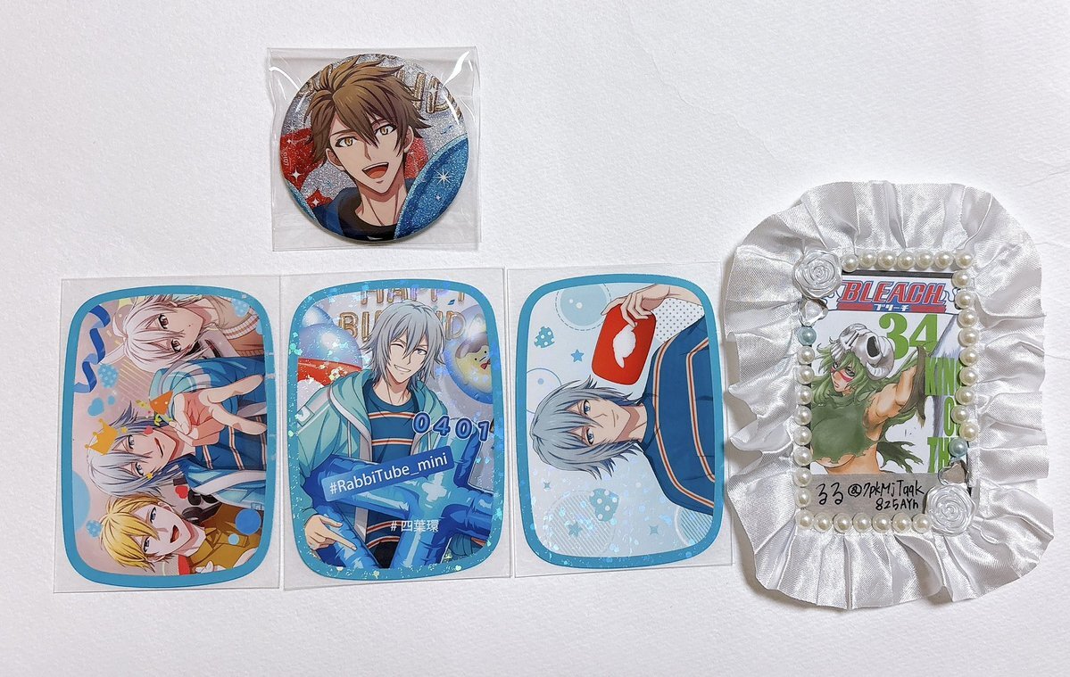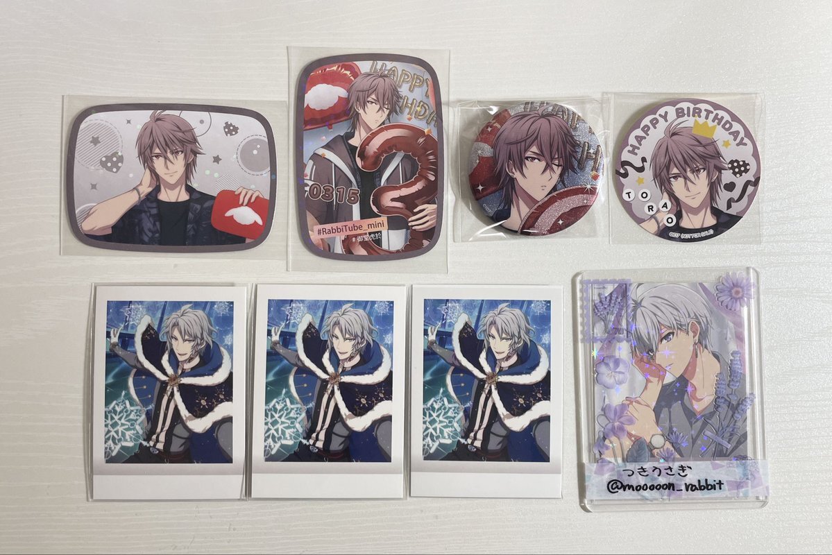 返信先:@taraco_0706こんばんは、お世話になっております。夜分のご連絡、大変申し訳ございません。 こちら環くん2点所持しておりますが、お約束している缶バッジ、フォトカードと併せて壮五、ナギと交換していただくことは可能でしょうか? ご検討いただけますと幸いです。よろしくお願いいたします。 pic.x.com/86HsgH1IDa