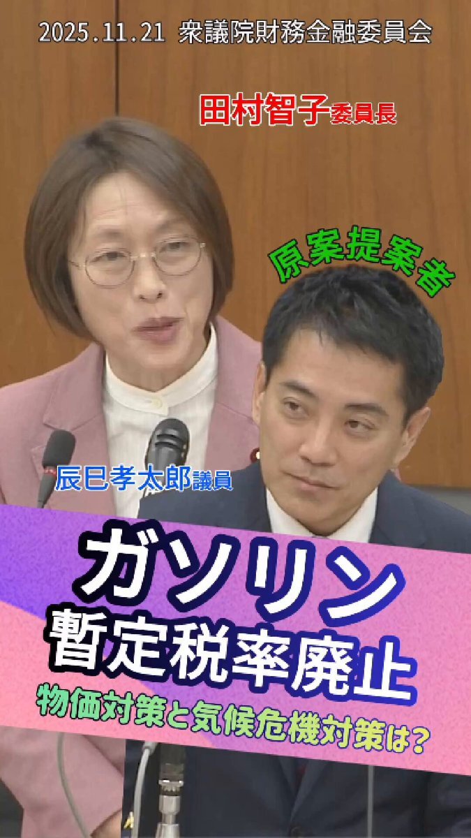 #田村智子 委員長は実現したガソリン暫定税率の廃止法案について 原案を提出した #辰巳孝太郎 議員に物価対策とともに気候危機対策について問いました! #ガソリン減税 #暫定税率 #物価高騰対策 #気候危機