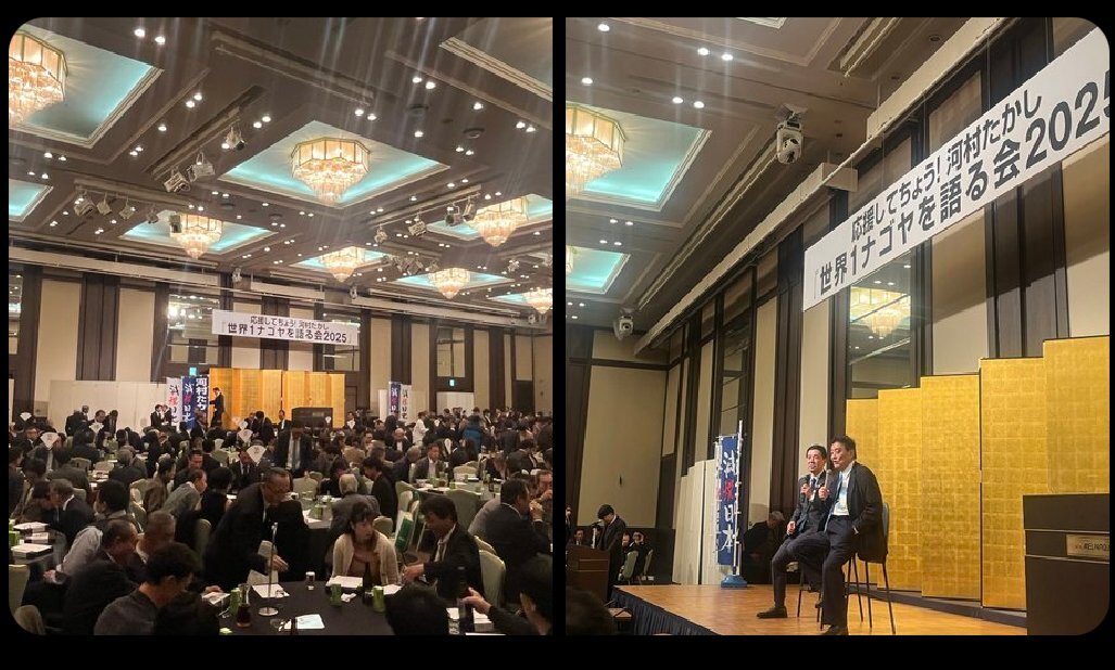 応援してちょう!河村たかし 『世界1ナゴヤを語る会2025』 メルパルクにて開催させていただいております。 今日のメインは、河村たかし前名古屋市長と広沢一郎名古屋市長のトークセッションです! 500人を超える皆さまにお越しいたただけ会場が満席です。ありがとうございます😊