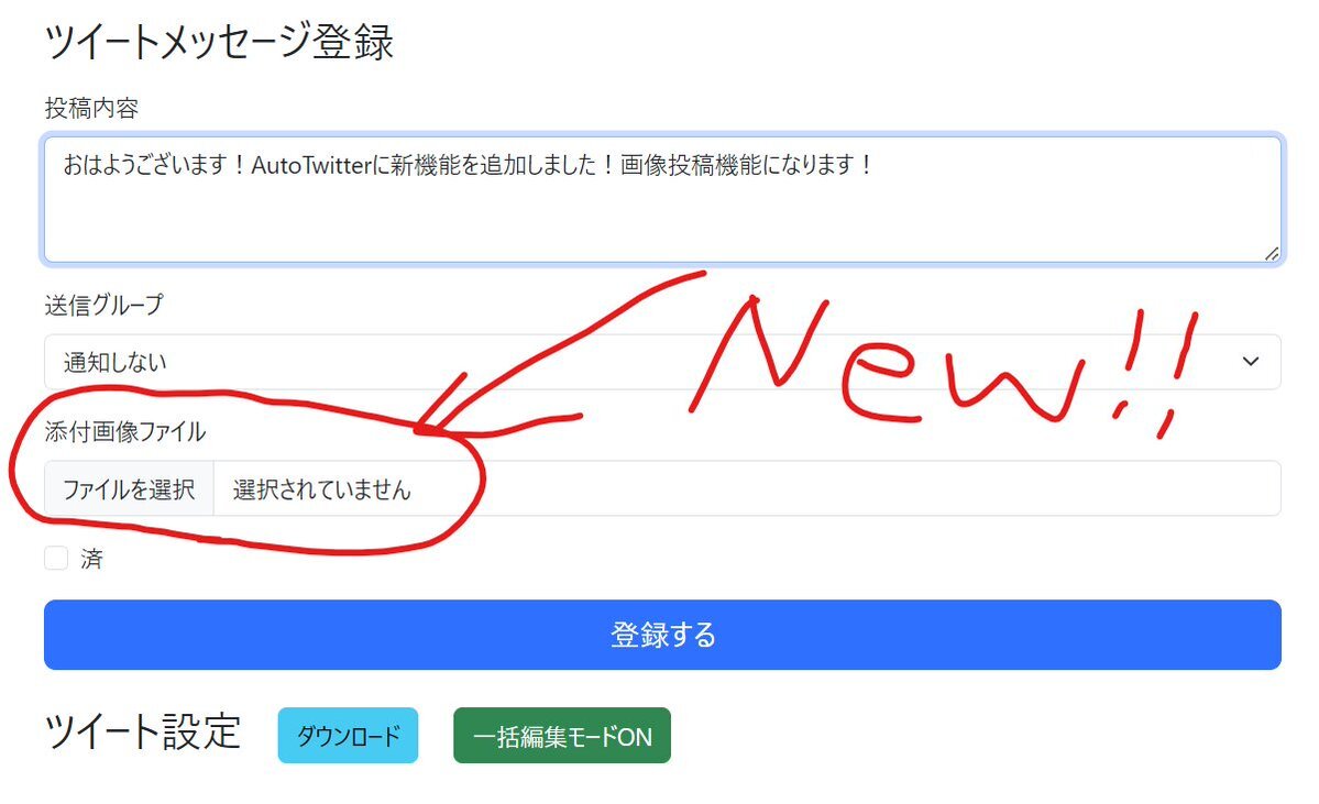おはようございます!AutoTwitterに新機能を追加しました!画像投稿機能になります! Xに画像投稿を出来る様に機能対応です!今後複数画像にも対応予定です!#改善 #アプリ開発 pic.x.com/dBIlfDx0Gv