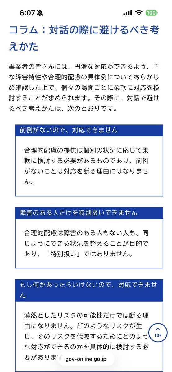 渋谷さんの事は全然知らない方ですが全力で擁護すると発信しないと私達が気付かないので身を削って発信してる。 あと合理的配慮って言葉を健常者(言い方は好きでは無い)が自分達の都合良く解釈して建設的対話を飛ばしてる。 今回のは政府のガイドラインで避けるべき考え方のテンプレみたいな事例。 pic.x.com/YNWgLelaYj x.com/kkoabdf_/statu…