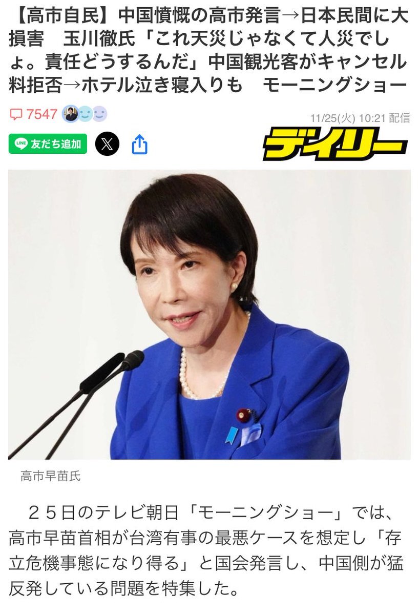 中国の日本への渡航自粛 それで約8割の中国人観光客がキャンセル それでホテルへのキャンセル料拒否もあるらしくホテルが泣き寝入りも それも台湾発言せいで高市早苗さんが悪いという声も つまりこれのパンダ版で志らく兄さんは炎上したんですよね 高市さんは悪くないと 中国側に立つのは違うと x.com/tatekawa91/sta…