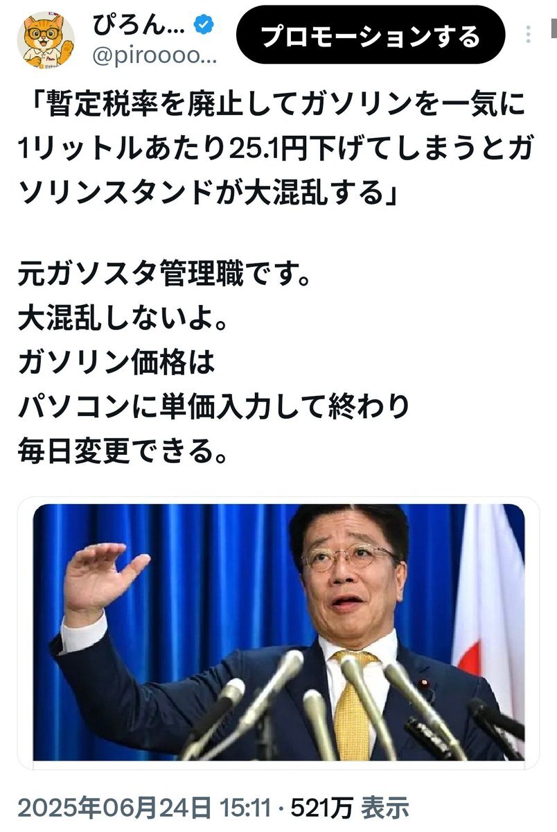 石破茂内閣の時に 『ガソリンを一気に値下げするとガソリンスタンドが大混乱する』 とか言ってた みなさんはガソンリが安くなってどうなった? ①大混乱した ②安くなって嬉しかった ③その他 発言を撤回とか言ってる奴は ガソリンの恩恵を忘れるな! pic.x.com/bkrx6vTOnl