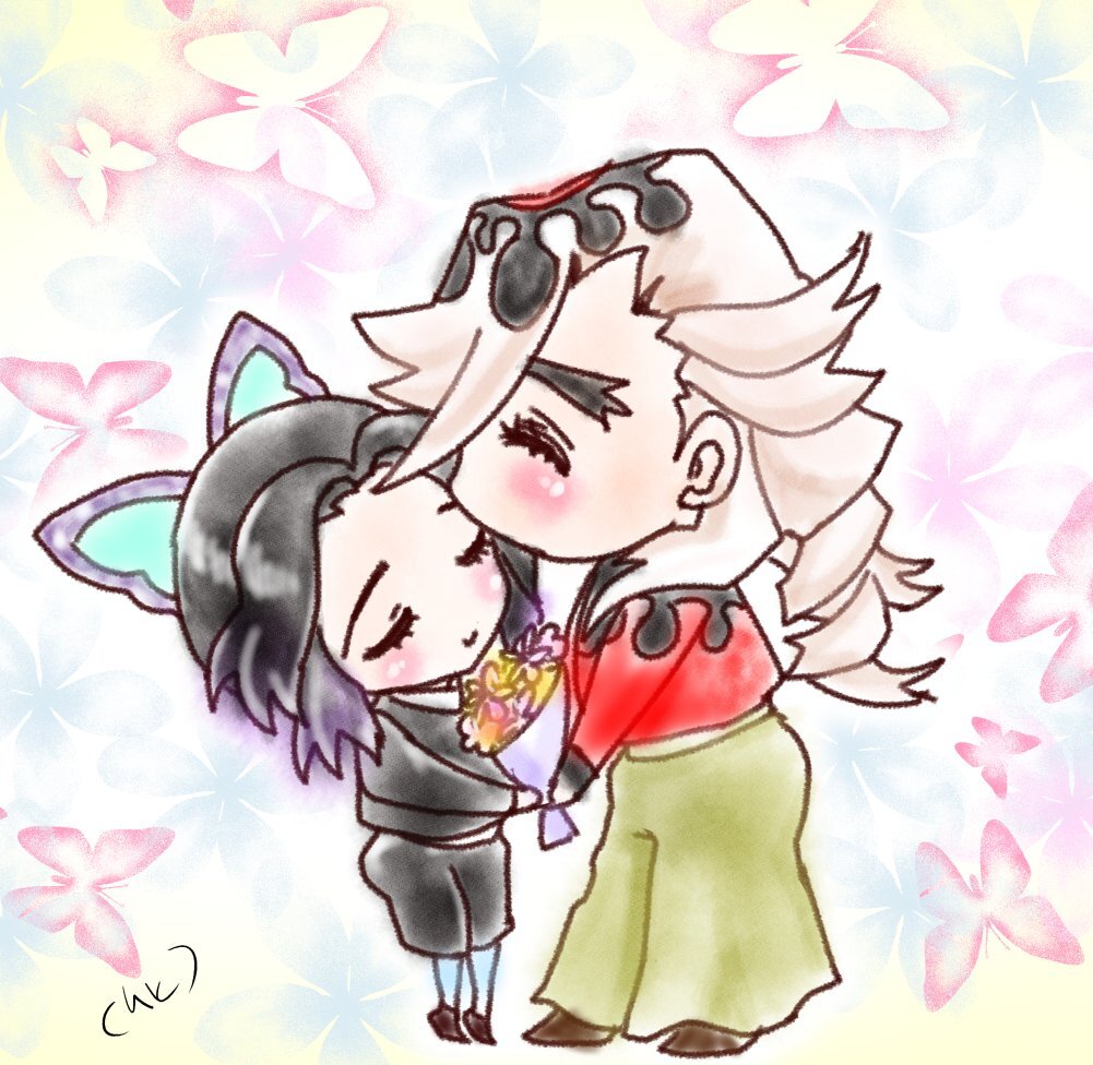 #ひらいて赤ブー 👹滅の🗡️ 「童しの」 童🪷磨✖️胡🦋蝶🦋し🦋の🦋ぶ 再掲BD絵 遅ればせながら支援致します ※〜10/7のRPの数が集計されますので宜しければRPお願いします ※❤️は対象外です