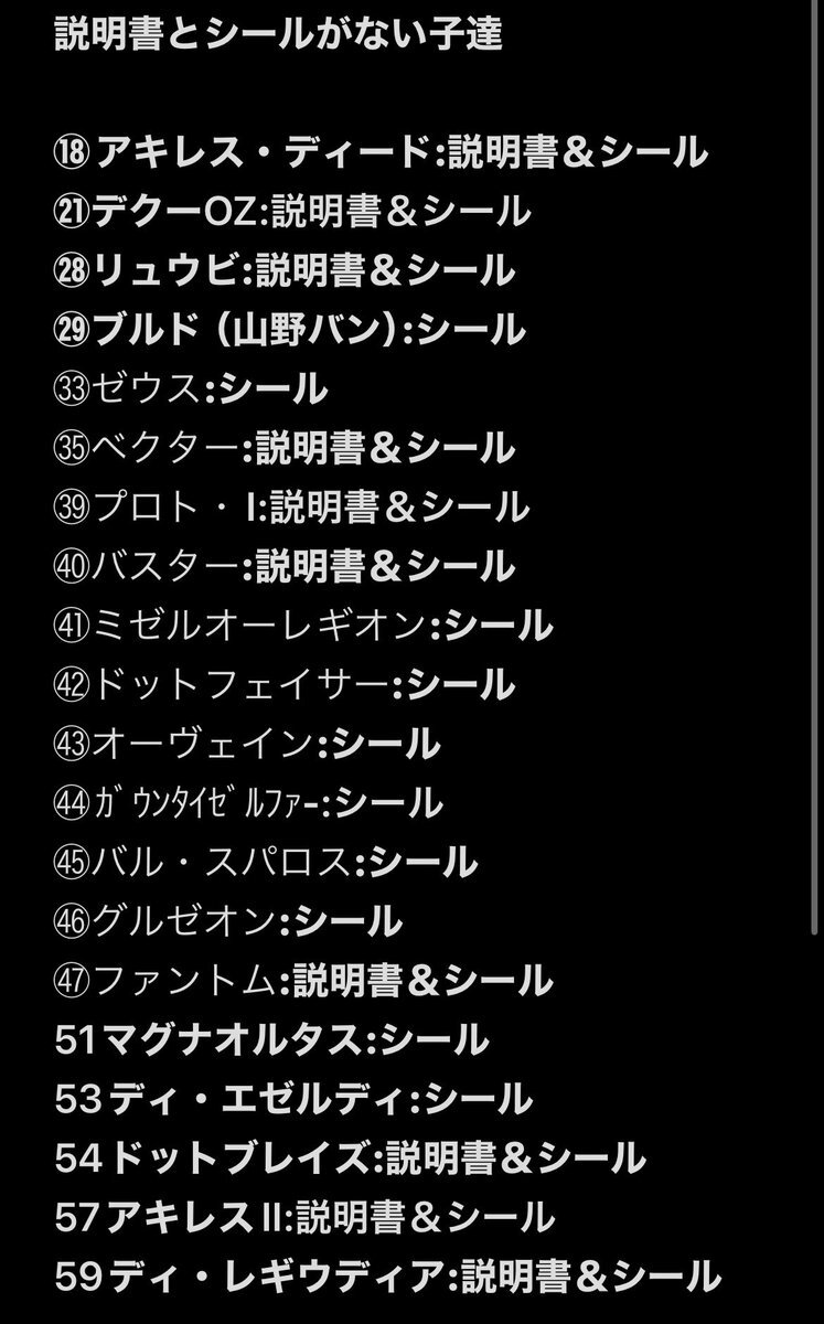 あの…自分からやってるのにほんま情けない話なんですが…プラモクオリティ選手権で「ランナー画像」と「シール」を画像として添付してるんですけど持ち合わせていない機体が結構ありまして… どなたか下記のLBX達のランナーとシールの画像を恵んでくれませんか…😭すみませんすみませんお願いします