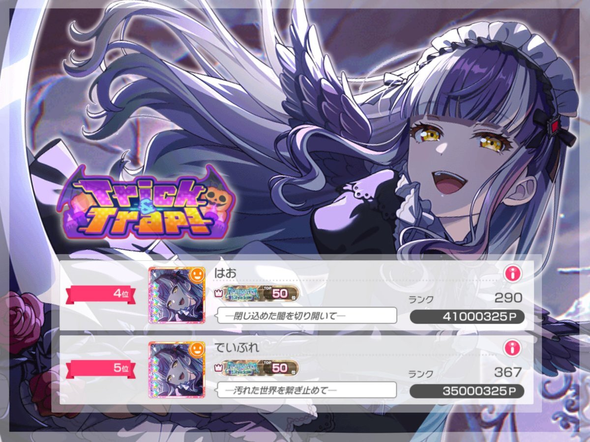 🦇 Trick&Trap!🎃 4位 41,000,325 P 協力してくれた皆様のおかげで本当に楽しいイベランになりました。 10日間ありがとうございました❤️‍🔥 でい同走ありがとう〜!! pic.x.com/a40YAPDSSn