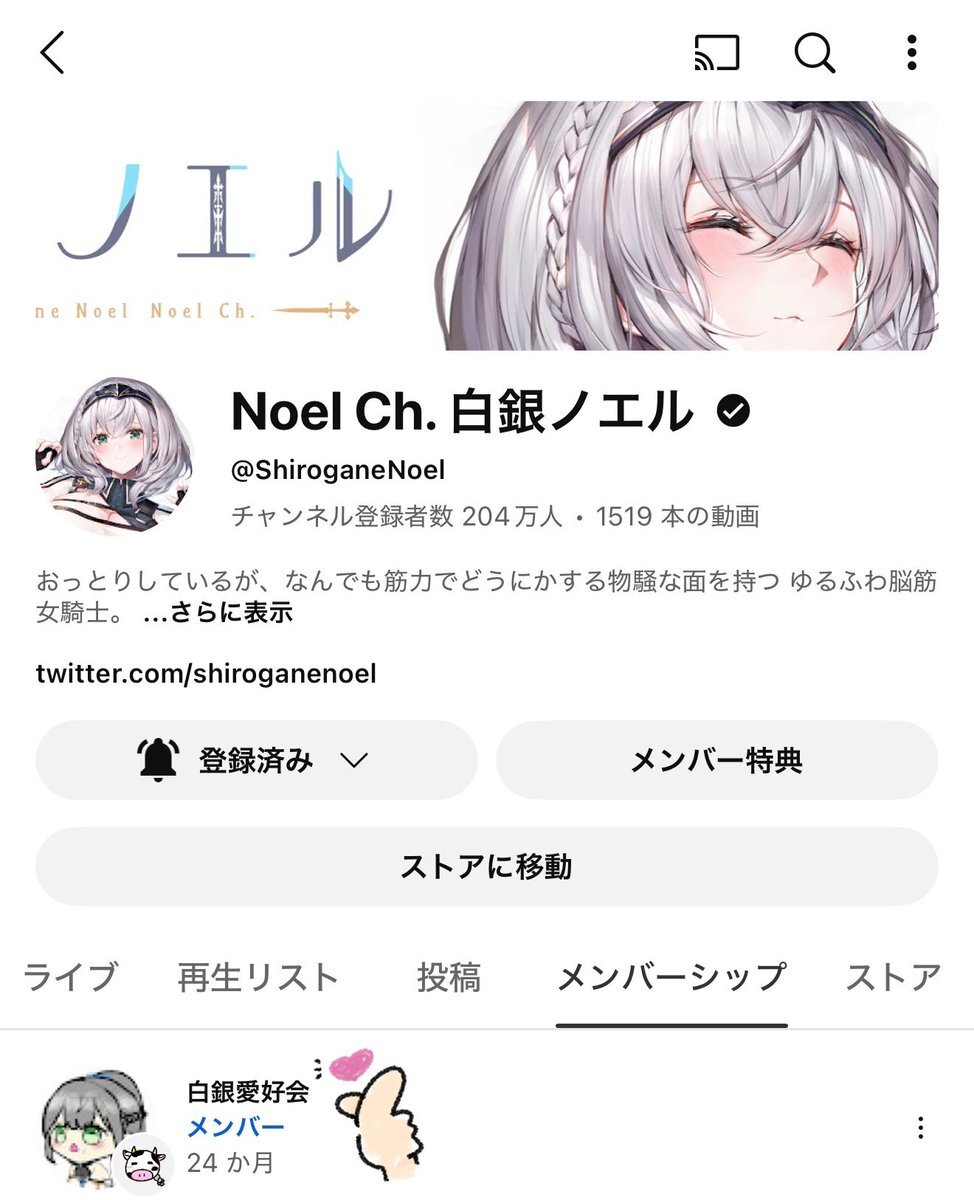 本日10/8でメンバーシップ2年を迎え牛さんバッジになりました🐮✨ いつも楽しい配信をしてくれるノエル団長、いいねやリプしてくれる皆様、ありがとうございます𐔌՞ ܸ.ˬ.ܸ՞𐦯 団長や皆様のおかげで楽しく推し活できています☺️ これからも団長のことを応援していくのでよろしくお願いします🙌 pic.x.com/2JTPnZQ0zr