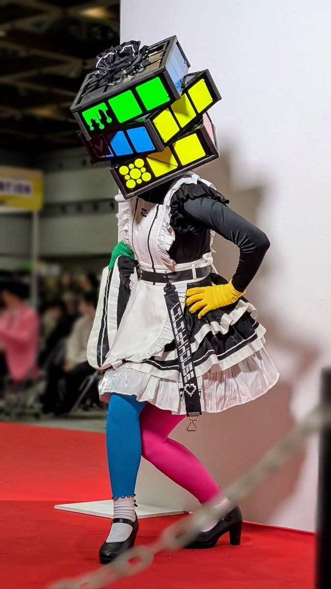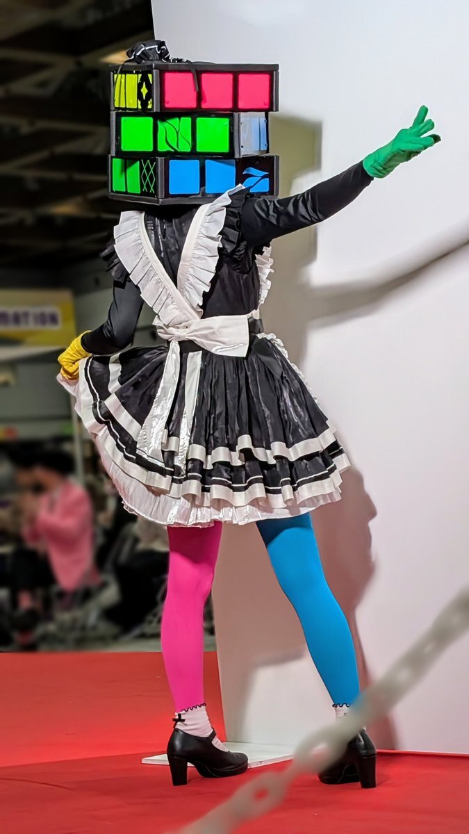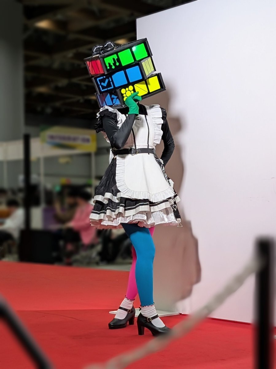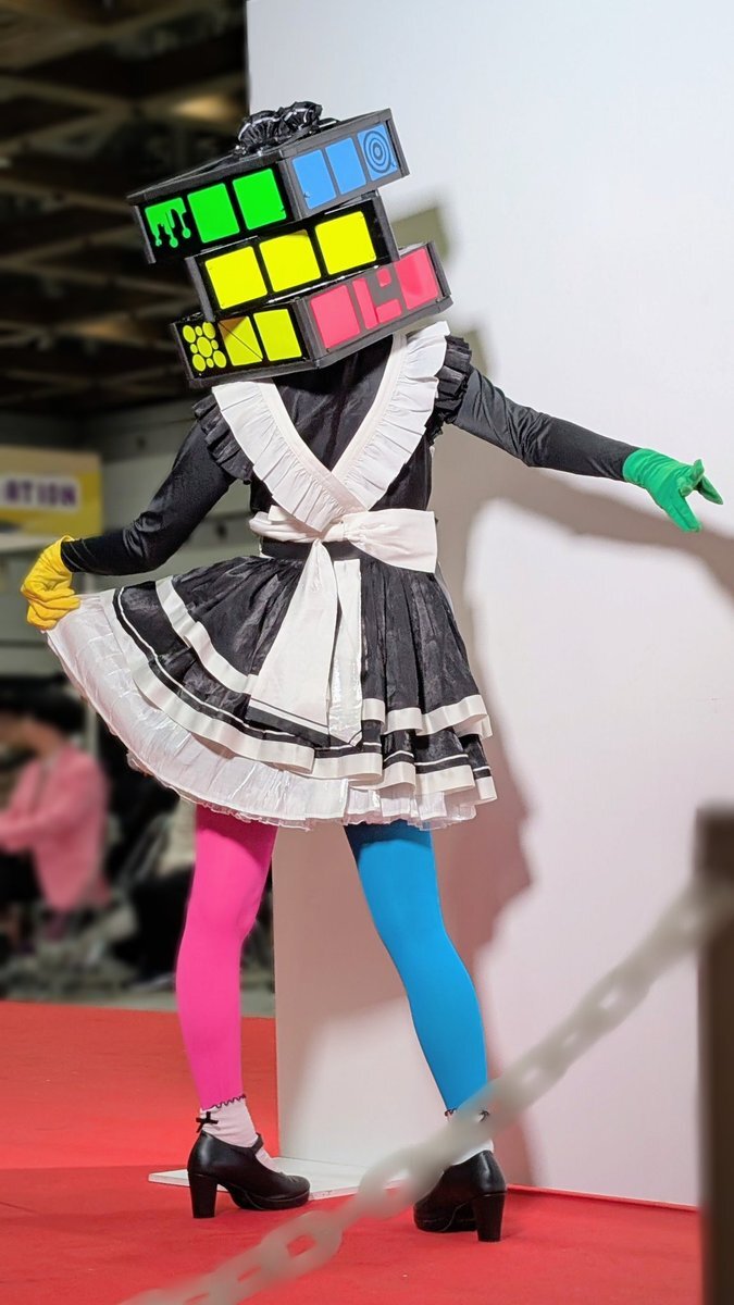 #デザフェス62 #ワンコインランウェイ 2日目/ るびこ さん ルービックキューブ頭の るびこさん 1日目のスーツから一転、2日目は可愛らしいメイド姿になった るびこさん ほら、みんな……待たせたな…… るびこさんのメイド服だぞ、目に焼き付けておきなさい…… ( ĭωĭ )˗ˏˋ 尊い ˎˊ˗ pic.x.com/otmF7arDZ2