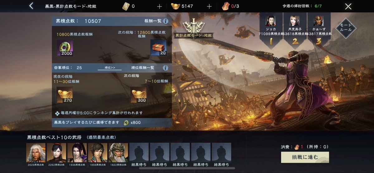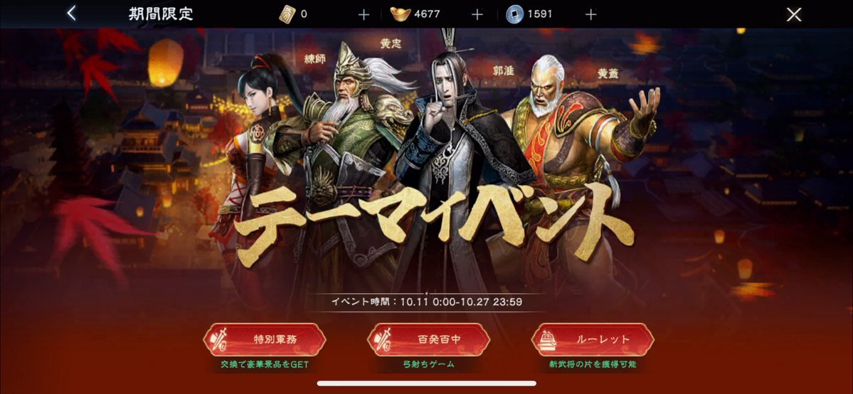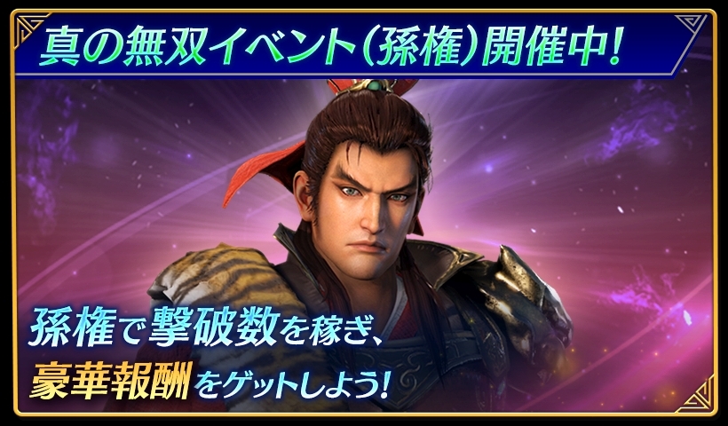 【鈴木P】アプリ『真・三國無双』 「真の無双イベント(孫権)」実施中! 孫権を編成して撃破数を稼ぎ、達成・ランキング報酬をゲット! ランキング報酬に“台詞バージョンの称号”が登場。 10位以内で、 「勇猛なる虎の血よ!」 をゲット! 10/21(火) 9:59まで #さんむそアプリ #三無双 pic.x.com/PzdSrr3oDP