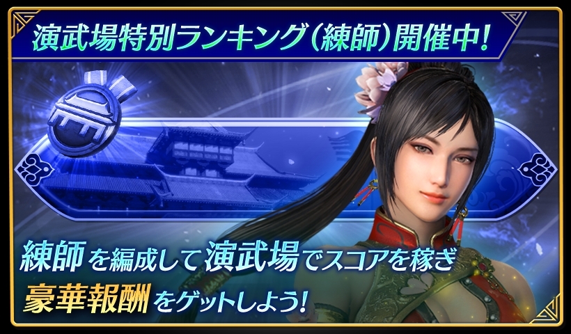 【鈴木P】アプリ『真・三國無双』 「演武場特別ランキング(練師)」開催中 練師を編成して演武場でイベントPtを稼ぎ豪華報酬をゲット! ランキング報酬に“台詞バージョンの称号”が登場。 10位以内で、 「ふふ……これで大丈夫ね」 をゲット! 10/21(火) 9:59まで #さんむそアプリ #三無双 pic.x.com/p7MaqOv7Il