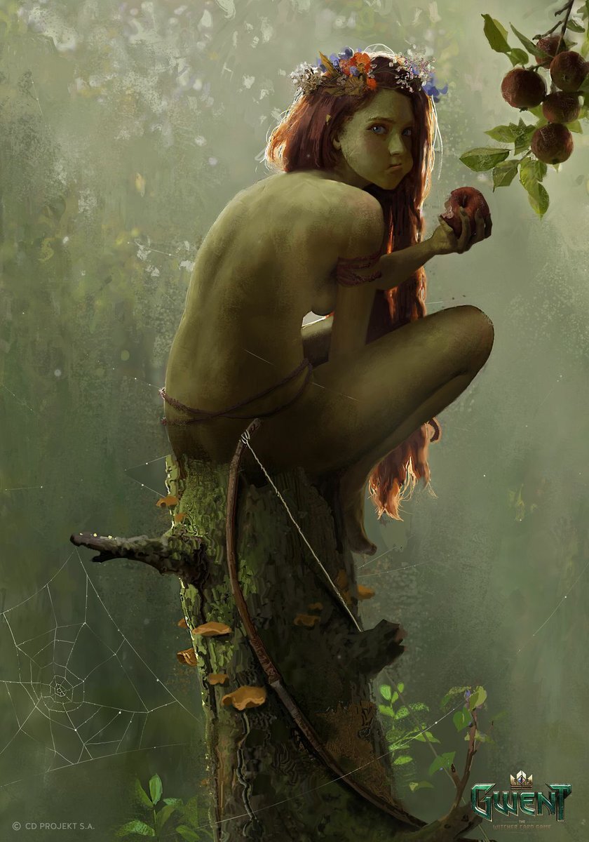 The word ‘dryad’ is derived from the Greek word ‘drus’ meaning oak (meaning Druid). Dryads were originally oak tree spirits, although over time they have come to represent all types of tree spirits and nymphs. art: Dryad by Lorenzo Mastroianni