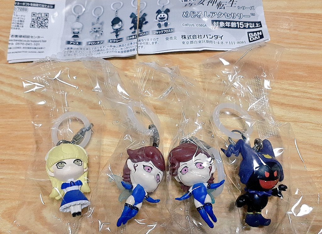【カプセルトイ】 『真・女神転生』めじるしアクセサリーを回してきたよ! ジャック・フロストは出なかったけれど、ピクシーが2つ! 普段使いしよう。 アリスちゃんゲットは嬉しい! どーる化の参考になります。 リーリオちゃんの服もかなり似てたけれど、新規で作ろう。 瞳はもちろん、猫米村さん! pic.x.com/L1ydClHIcM