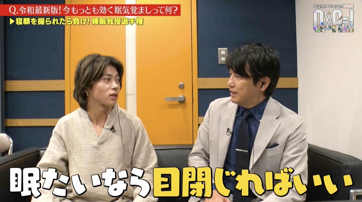 ℚ.「今もっとも効く眠気覚ましって何?」 至極、真っ当www 💙❤️💛💜💚 📍TVer・FODにて最新話見逃し配信中👀 tver.jp/episodes/eplhi… 🗓️毎週日曜 𝟐𝟓時𝟐𝟓分~ #QandAぇǃ #Aぇǃgroup #末澤誠也