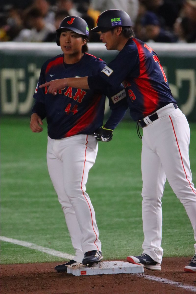 第2打席は押し出しの四球で出塁 亀井コーチとのコンビ好きだったな 11/16 ラグザス 侍ジャパンシリーズ2025 日本 vs 韓国 #侍ジャパン #石上泰輝 選手 #亀井善行 コーチ pic.x.com/UDmb4audQT
