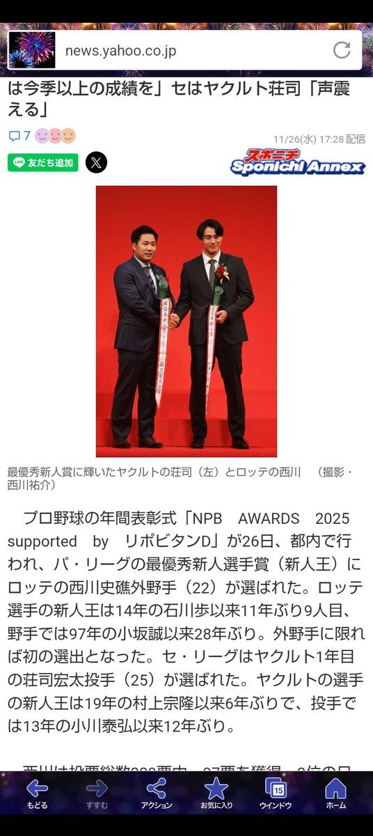 史礁新人王!おめでとう!! 2014年の石川歩さん以来のロッテから新人王が😢 x.com/chibalotte/sta…