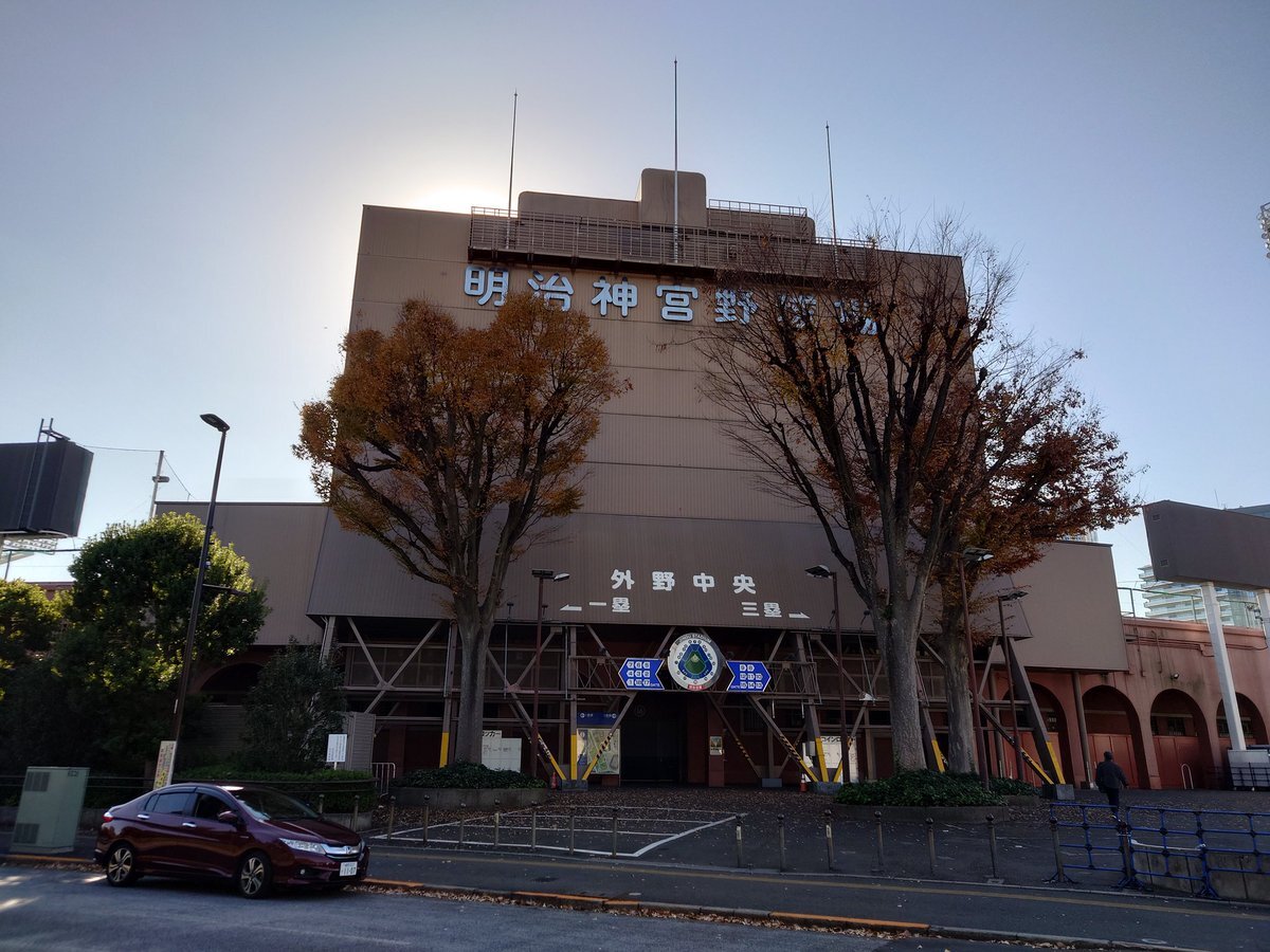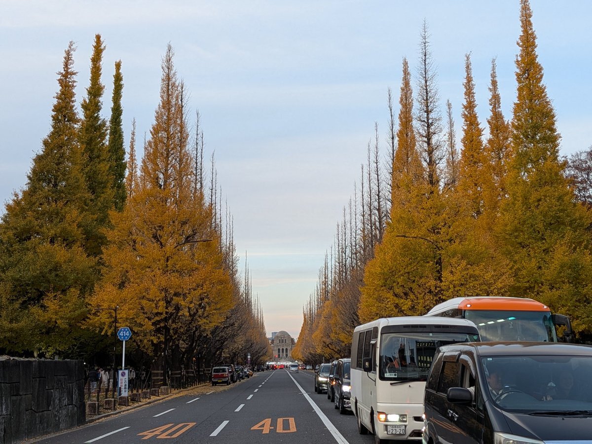 今朝TVでやっていた外苑のイチョウ並木道に行って来ました😃 所々イチョウ落葉してましたが秋の雰囲気感じられました。 国立競技場と神宮球場って目と鼻の先にあるんですねえ🤔 pic.x.com/mFaXs551z7
