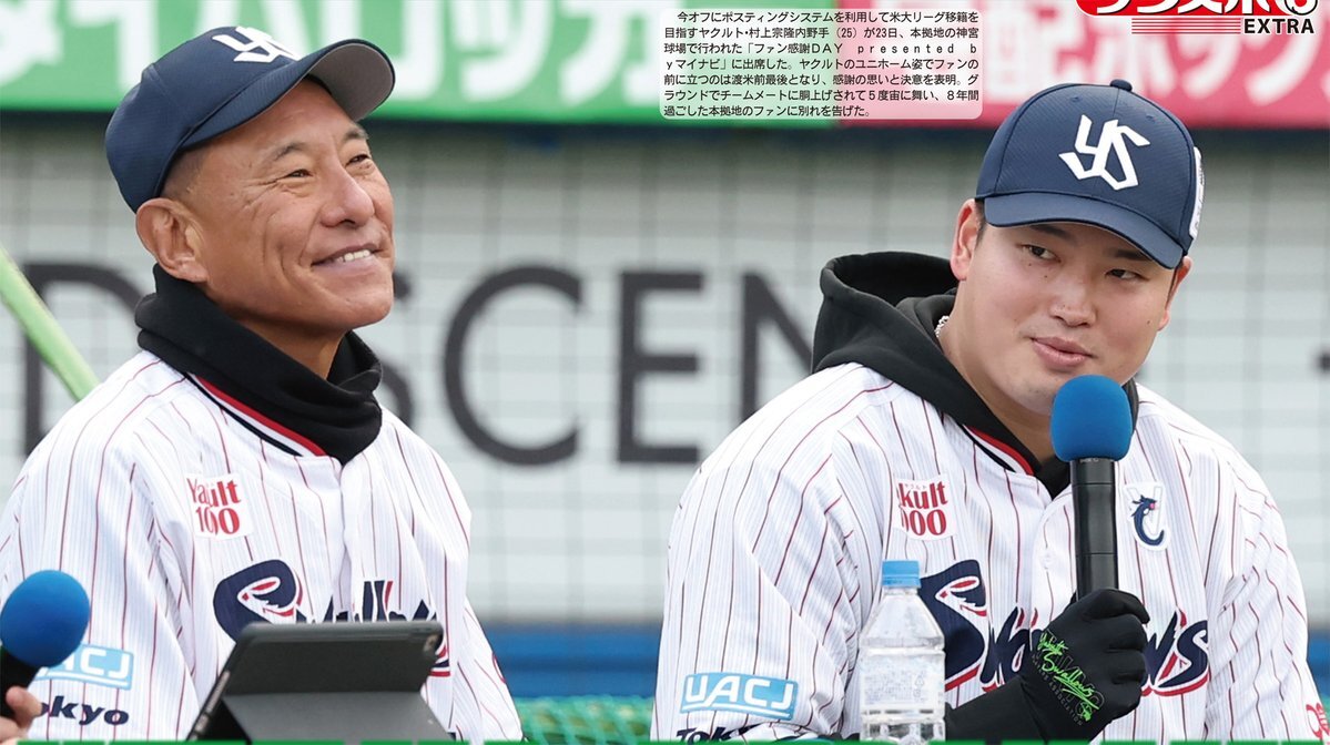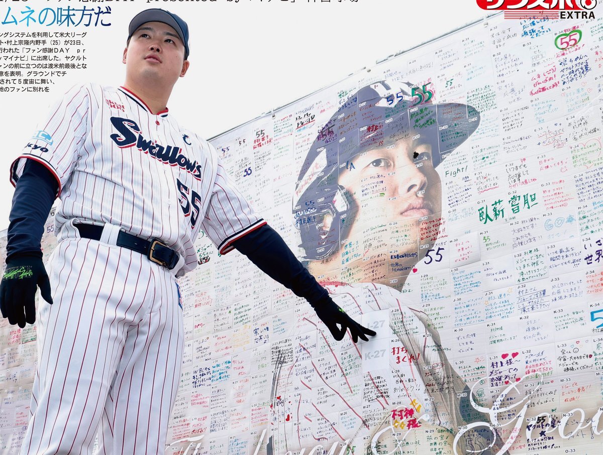コンビニプリントならサンスポEXTRA きょう発売の商品は #ヤクルト #村上宗隆 選手です! 神宮球場で別れを告げた村上選手を4パターンの特別レイアウトで! #swallows 全国のコンビニマルチコピー機で発売🖨 二次元コードで簡単に購入できます 詳しくはe-printservice.net/content_detail… pic.x.com/2Lxlso2Ijl