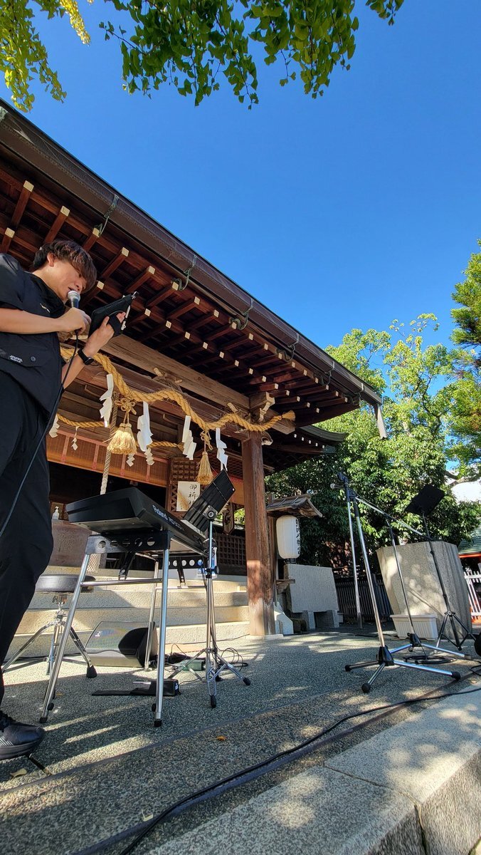 今夜の観月会のセッティング中!! 神戸の街を見渡せる高台にある熊内八幡、昨年に続き気持ちのよい空が広がっています。 本日の神戸の月の出時刻は16時59分。 新神戸にお近くの方は是非とも熊内八幡へお越しくださいね。 17時30分神事。 18時30分コンサート。 黒い服装のスタッフたちは蚊の餌食。 pic.x.com/rVpVauYdpM