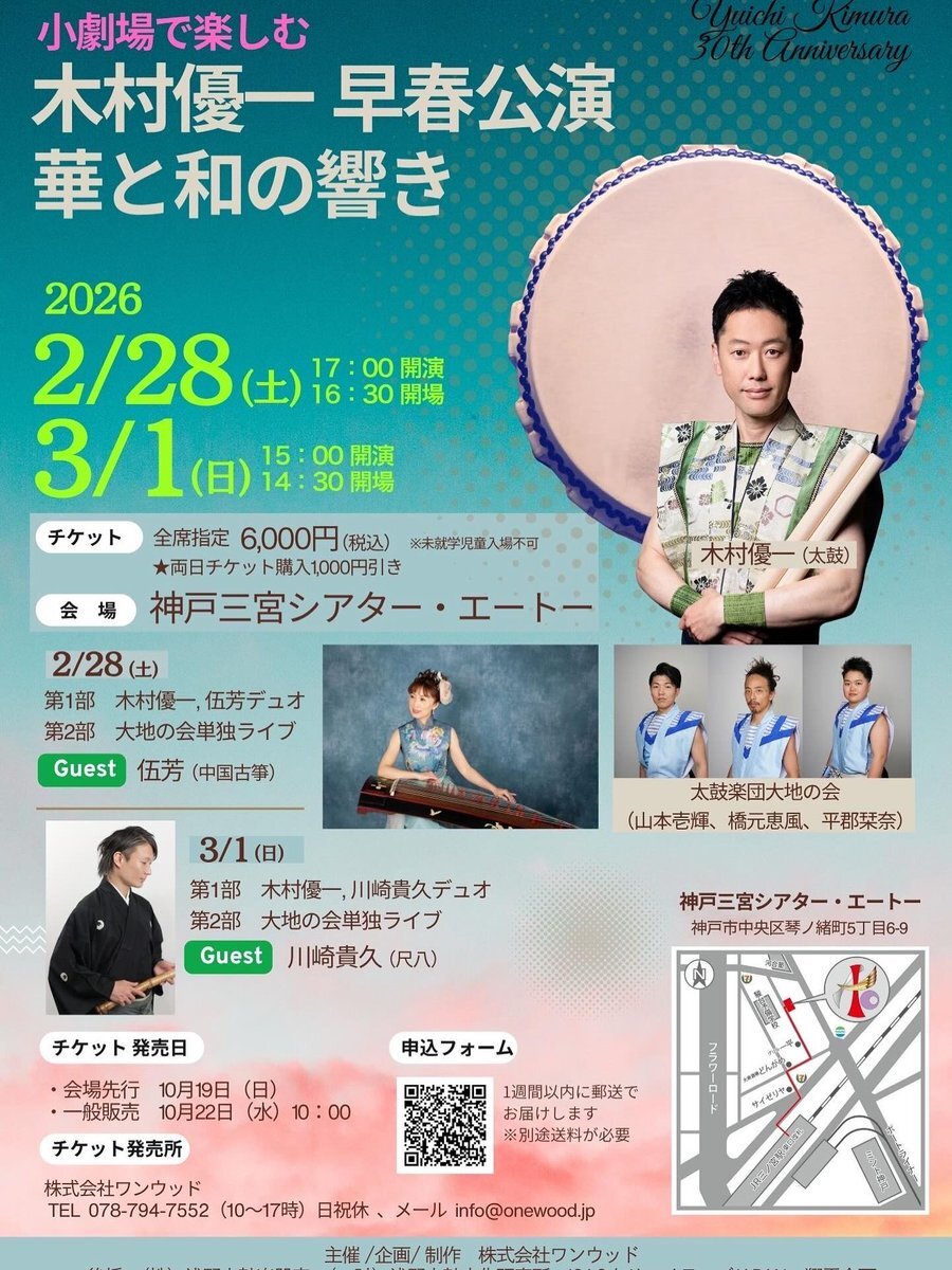 2026/02/28日(土) 2026/03/01(日) 木村優一早春公園 華と和の響き 神戸三宮シアター・エートー 神戸市中央区琴ノ緒町5-6-9 2/28開場16:30 3/1 開場14:30 出演 木村優一 チケット.問合 ワンウッド 078-794-7552 info@onewood.jp #太鼓 #和太鼓 #TAIKO #WADAIKO #木村優一 pic.x.com/ANYW8CnmAc