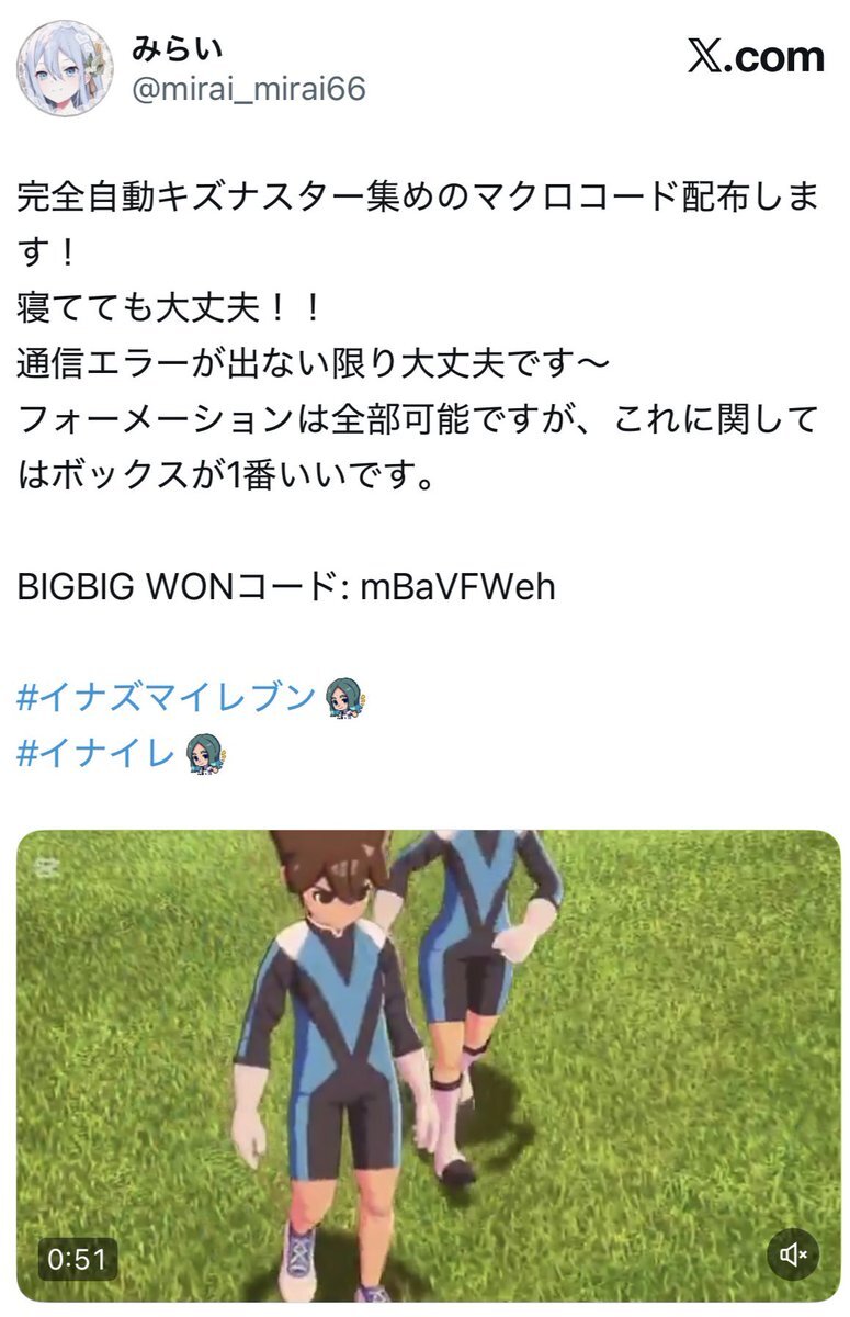 返信先:@AkihiroHinoちなみにこの画像のような、外部ツールを利用したプレイを拡散しているユーザーがいるのですが、公式として許可をしているのでしょうか。本人は「マクロはゲームにおいて禁止されていないからイナイレでもok」という認識のようですが pic.x.com/h1ezPIwK4c