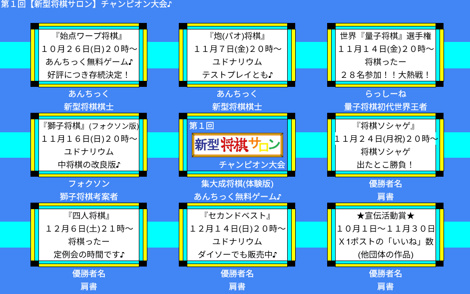『将棋ソシャゲ』大会 事前研究しているけど現時点ではあえて秘密で♪(^^) なお、問題視された 「京翔乱舞デッキ」(『京将棋』の京翔11枚!)は 禁止されていないので、使うかもしれないし、 使わないかもしれない♪(^ω^) pic.x.com/JAfqCB5Izr