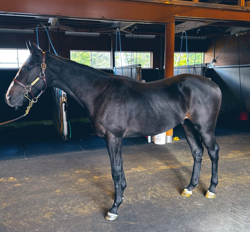 ヒルダズパッションの24 父キタサンブラック NF早来 村上厩舎 福永祐一厩舎 未完成ながら馬体のシルエットは素晴らしく、坂路1本でスピードに乗った際のフットワークにも良さを感じさせる すんごい褒められててびっくり🫢 x.com/nabepro_baken/…