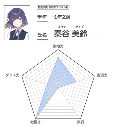 『学園アイドルマスター』秦谷美鈴“傲慢さMAX、素行0” news.denfaminicogamer.jp/news/2502052m 公式生放送にて紹介PVが公開。穏やかなBGMの中、不良漫画のラスボスのような情報が明かされた。 甘えん坊な親友(恐らく月村手毬)を「妹や娘のように慈しみ」とママ属性を匂わす情報も。彼女のプロデュースは5月開始。 pic.x.com/0yIRM0Xtcz