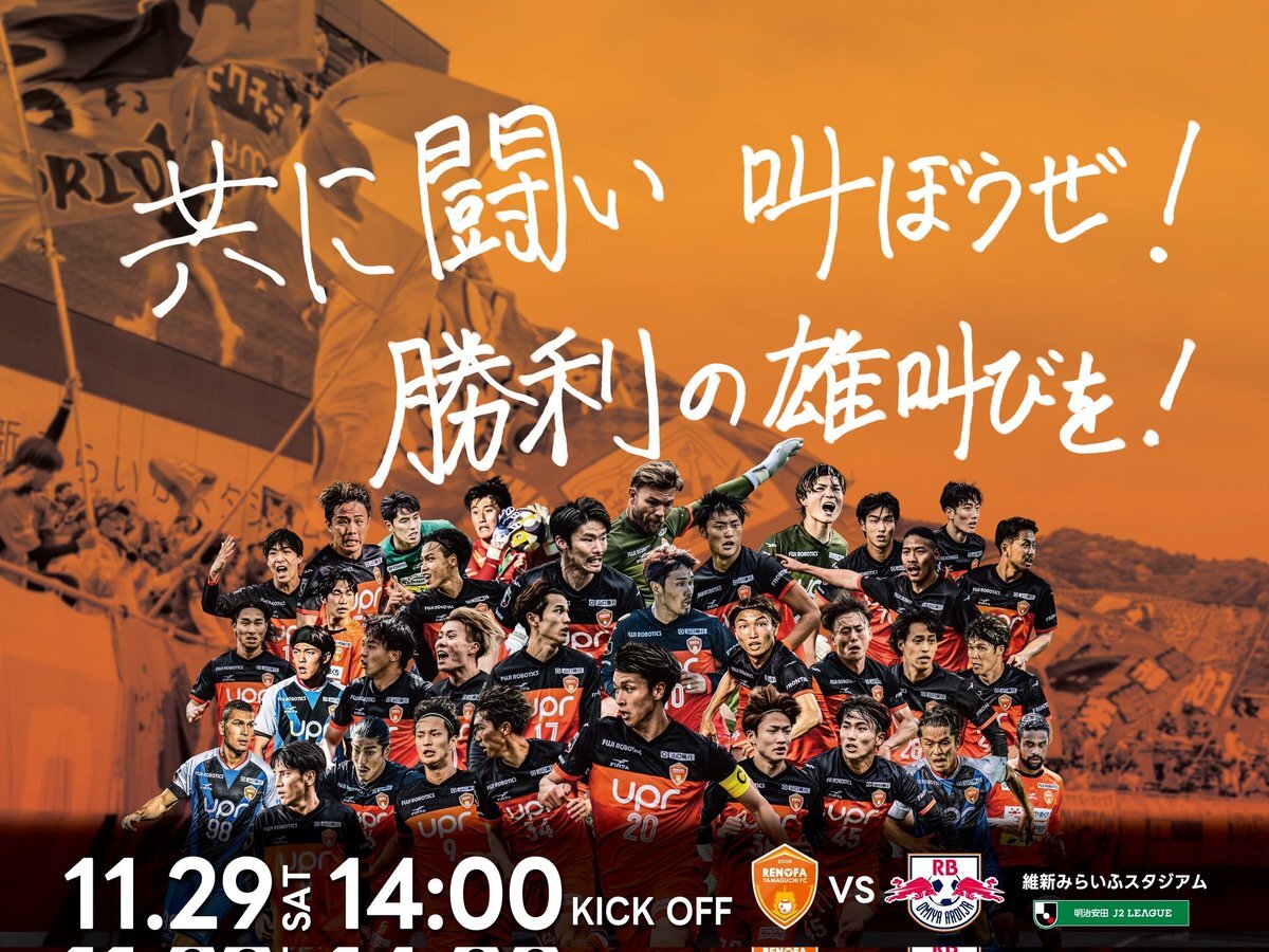 🔴ホーム最終戦 共に闘いましょう!🔥 11/29(土)は2025シーズンのラストゲーム⚽️ 皆さんの熱い応援が、選手たちの背中を押し 勝利へのゴールを呼び込みます! 一人じゃない。共に戦う仲間がいます。 ロアッソ熊本を愛するすべての皆さん、 ぜひ、えがお健康スタジアムに来てください!