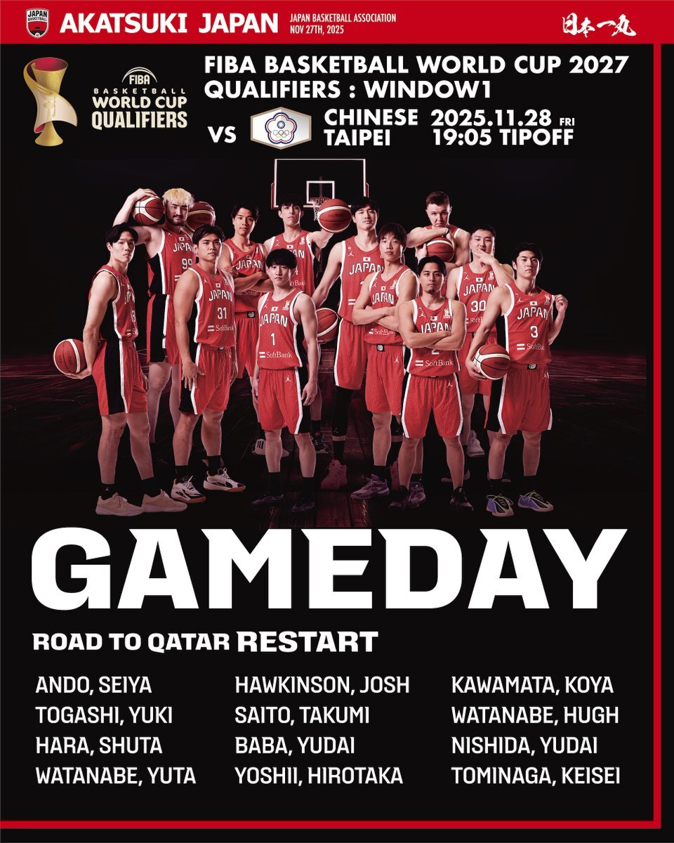 絶対に負けられない戦い🇯🇵 真剣な面持ちアリーナ入り🚌 このあと19時5分ティップオフ 🏆FIBAワールドカップ2027 アジア予選🏀 📺#DAZN でライブ配信 📅11/28(金)19:05 TO 🆚日本×チャイニーズ・タイペイ #AkatsukiJapan #FIBAWC #StepItU @JAPAN_JBA pic.x.com/lHPWmcNtVJ