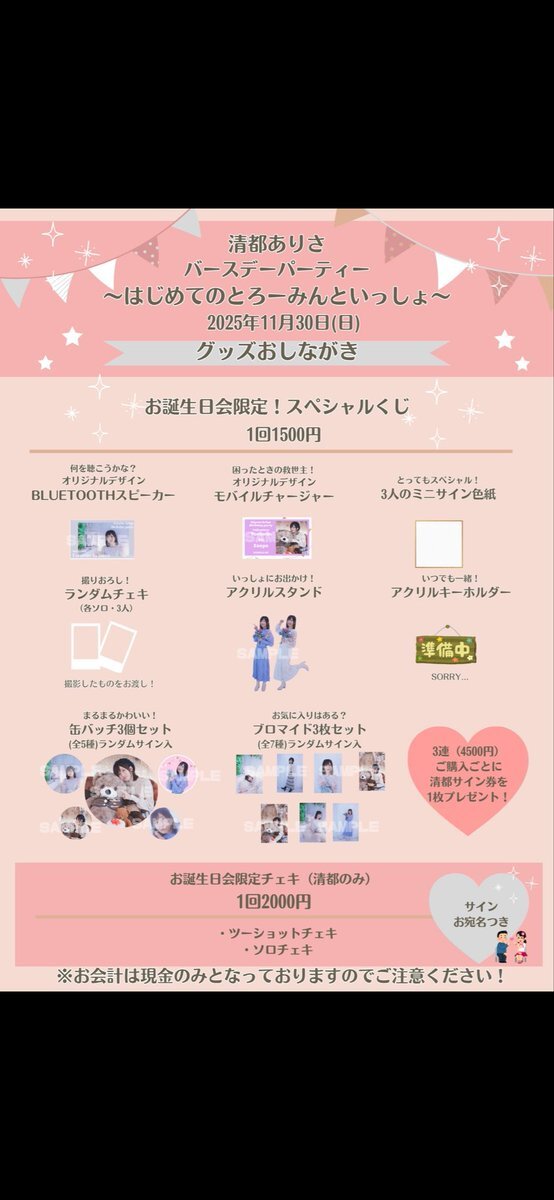 明日のイベントについてのお願いです🙇♀️ 🤍会場について 開場前の列形成が難しいため、開場時間直前にきていただけると助かります😢 お席は決まっておりますのでご安心ください🥰 🤍グッズについて 物販は3回購入ごとに並び直しをお願いできれば嬉しいです😢 🚃総武線各駅停車だよ…気をつけてね…! x.com/kiyotorou/stat…