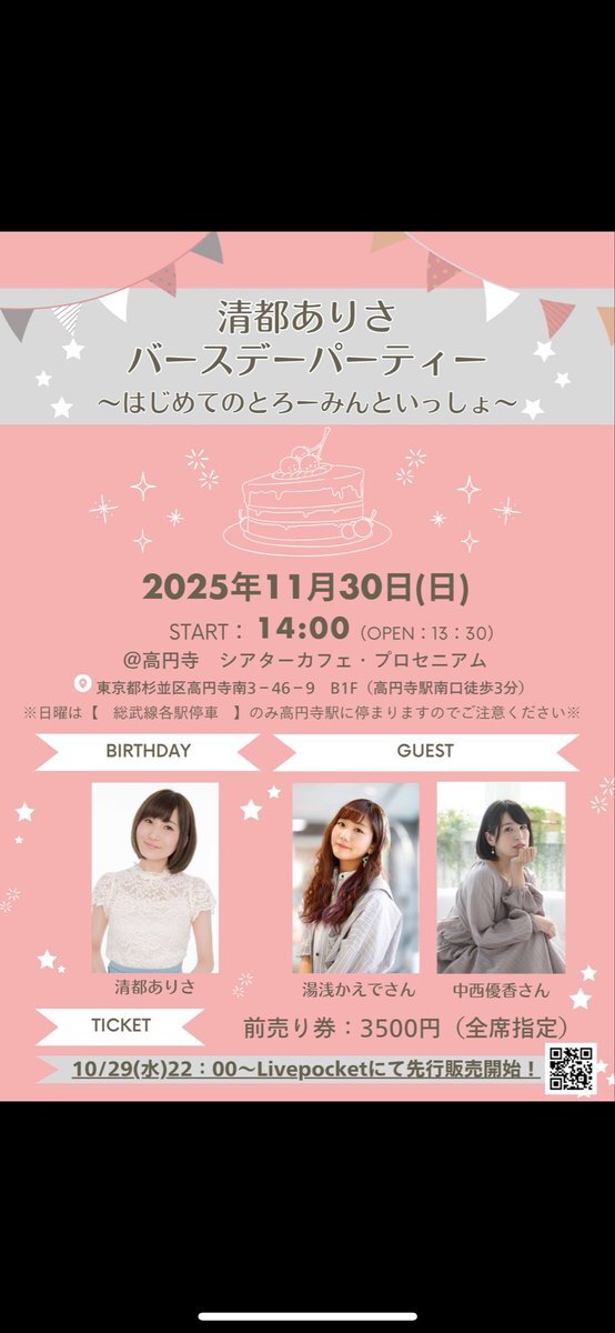 イベントついに明日だ…!🥹 💐当日券も少しですがご用意あります!!✨ 4000円ですー!! ⚠️日曜日の高円寺は 【 総武線各駅停車 】しか停まらないのでご注意ください! 💌おたよりはこちら docs.google.com/forms/d/e/1FAI… 明日楽しもうねーー!!🥰 #とろーみん #とろーみんといっしょ