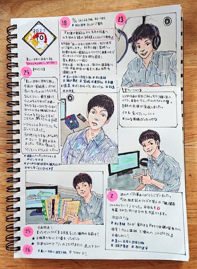 #美しい日本に出会う旅 2023年10月25日放送分、宮城の旅のナレーション風景まとめ。ツリーで繋げた2年前の初回と比べると、アドリブかます余裕もあって、確実にナレーション技術も上がってるんだろうなと思いました。ボンネットバスの逸話や畳職人さんなどが興味深かった #松下洸平 #推しノート