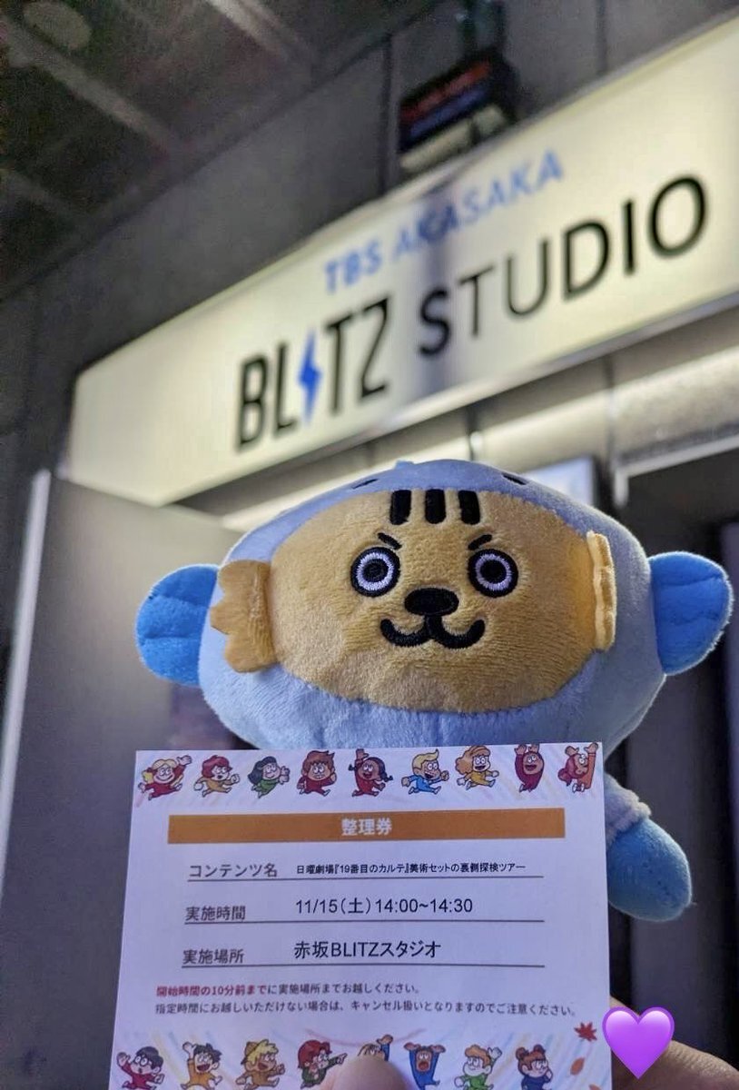 裏側探検ツアーギリギリ整理券もらえました🎫💜美術スタッフさんのお話とても楽しかったです😆ホント5分ぐらいで人数がいっぱいに😭 でも、見学は自由みたいです。 #日曜劇場19番目のカルテ #日曜劇場19番目のカルテ裏側探検ツアー #松本潤 pic.x.com/y0HuFbQyLd