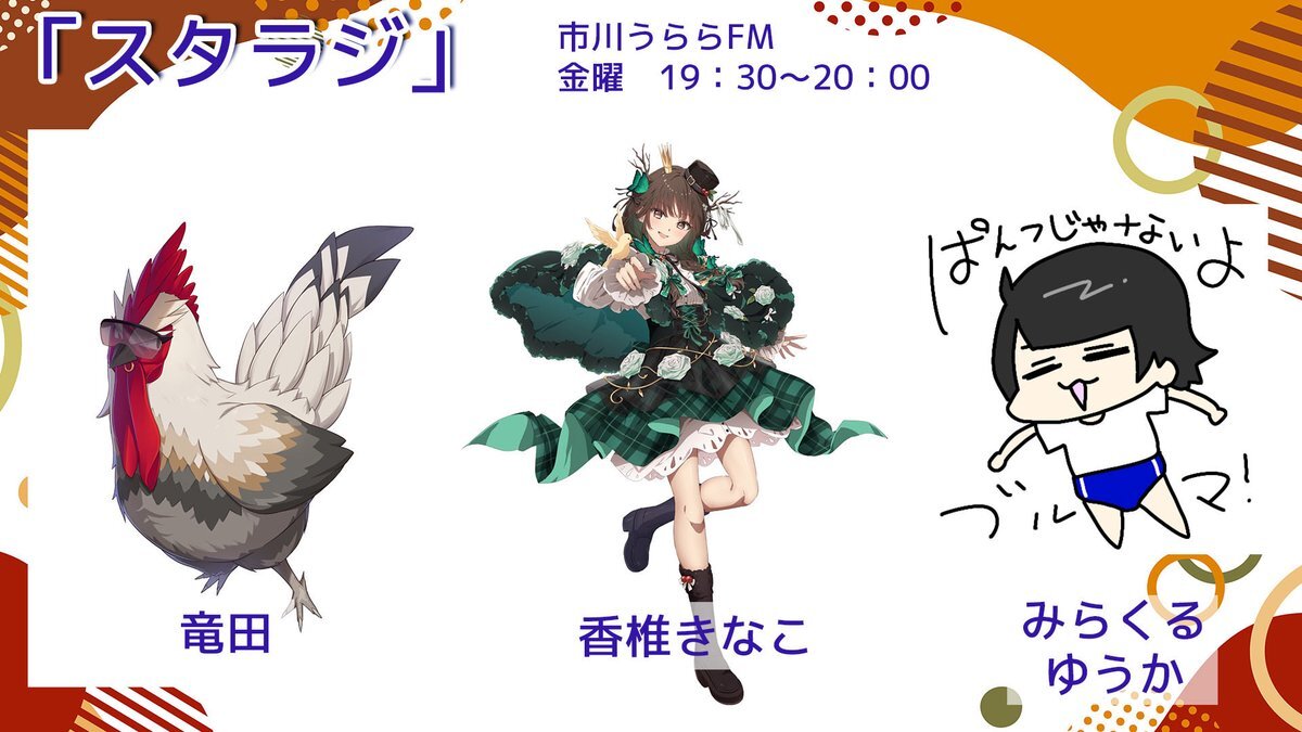 【ラジオ情報】 11/28(金)19:30〜20:00 市川うららFM「スタラジ」 fmu.co.jp MC 竜田・香椎きなこ ゲスト みらくるゆうか CM 青海星歌/Ruu/陽向なつみ/サカガミトモノリ/ぞーんちゃん/メーレ/天使エル OP Ruu「Will」 ED Ruu「ハッピーラッキー」 アーカイブ youtu.be/wT5R1hL9yow