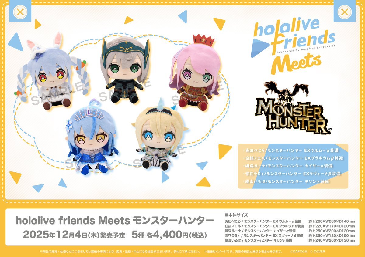 / 📣 『#ホロライブ プロダクション』オフィシャルグッズ販売情報 \ 【hololive friends Meets モンスターハンター】 ♦兎田ぺこら/モンスターハンター EXウルムーα装備 ♦白銀ノエル/モンスターハンター EXブラキウムβ装備 ♦姫森ルーナ/モンスターハンター カイザーα装備