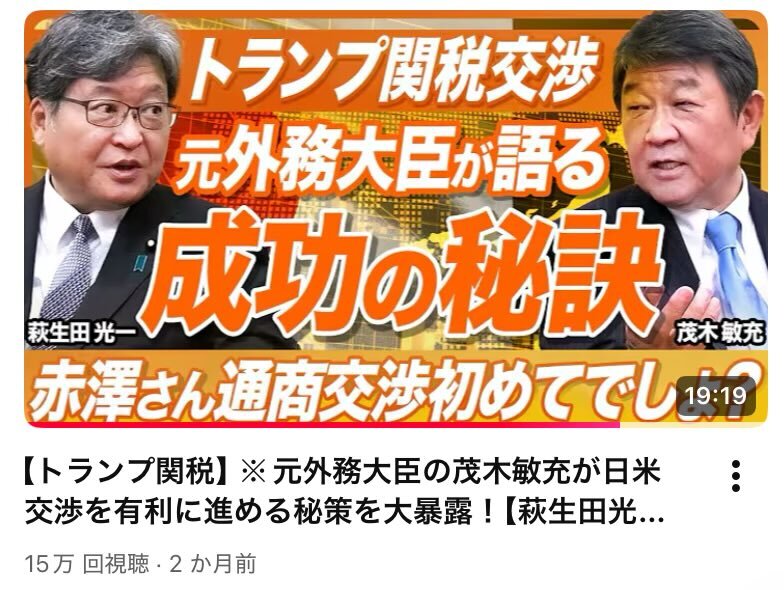 【トランプ関税】※元外務大臣の茂木敏充が日米交渉を有利に進める秘策を大暴露!【萩生田光一 自動車関税 相互関税】 youtu.be/0BZOws8dU24?si… @YouTubeより⭐︎外交交渉のリアル,YouTubeだからこそ聞ける内容。自民党の議員さんのお話で初めて(失礼😆)興味を持ってたのしく聞けました👍 pic.x.com/YC7X0xTFOb