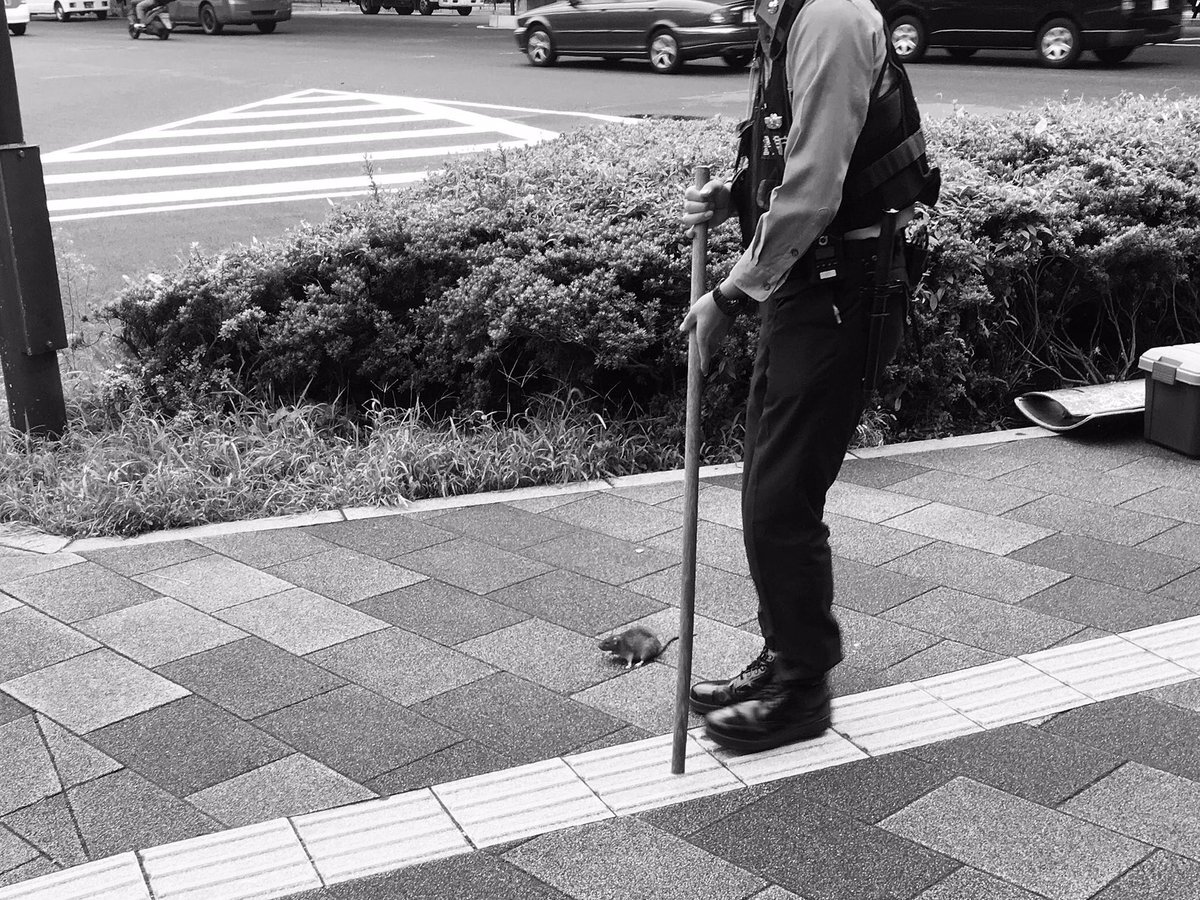 優しい警察官 人馴れしたネズミ君。警備中の警察官に、草むらに誘導されていました^_^ 平河町交差点、自民党本部前。 Photographed on September 22, 2018. pic.x.com/kjYzHfhXSN