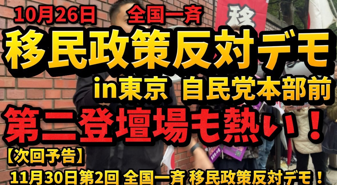 10月26日全国一斉 移民政策反対デモ!東京自民党本部前!第二登壇場も熱い!皆様、スピーチありがとうございました🙇♀️【次回予告】第二回 全国一斉 移民政策反対デモ!11月30日開催! youtu.be/9ASFyH8dpIc?si… pic.x.com/qMBOqj86jk