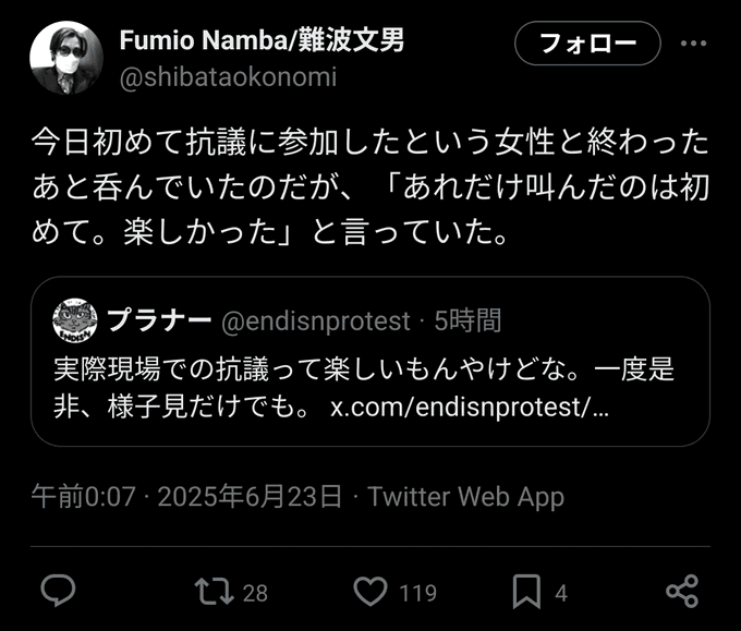 10月26日移民政策反対全国一斉デモ(自民党本部前)に参加してきました インスタでも投稿しましたが、100以上あった閲覧数が0にされました…検閲本当に酷くなってきています #移民政策反対デモ #自民党政治を終わらせよう pic.x.com/bftjhDZsRN