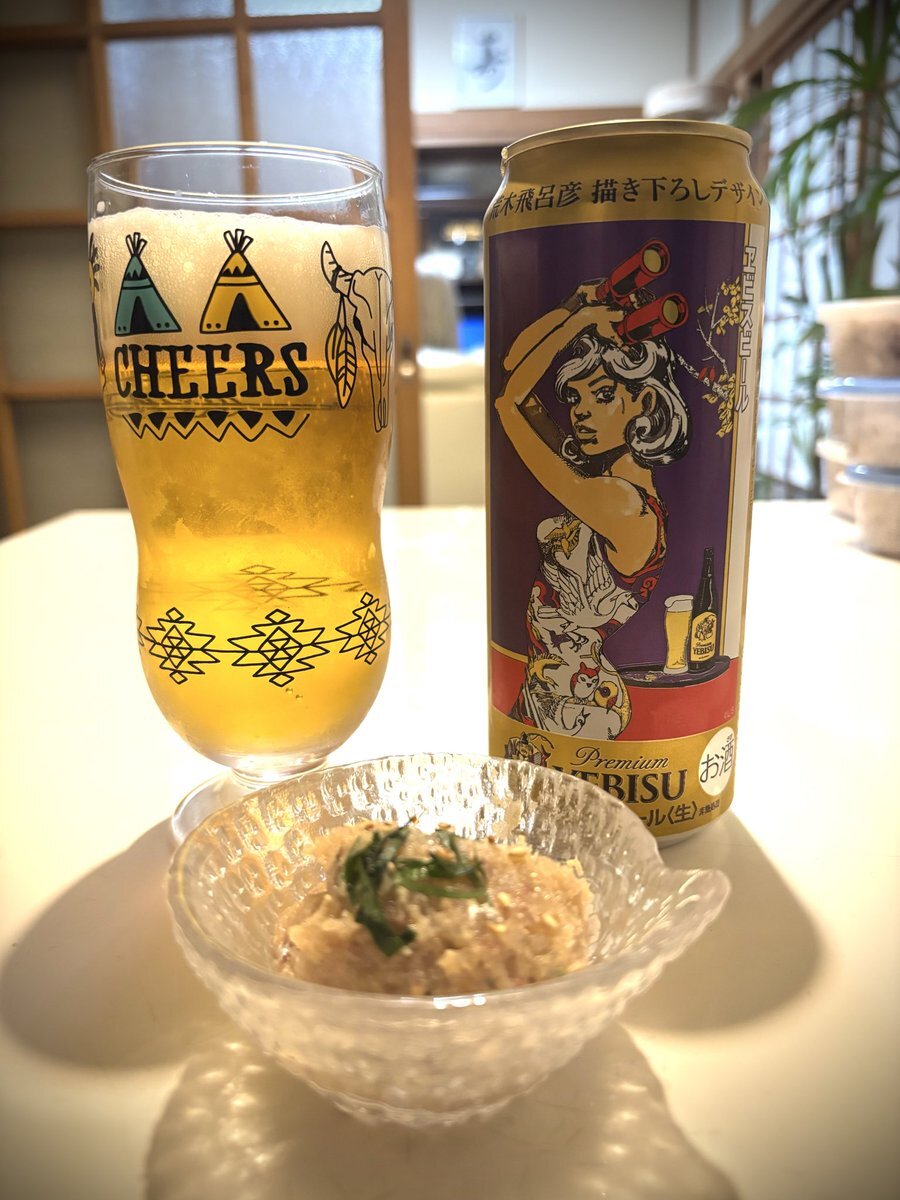 勇助くんから7周年祝いに頂いたジョジョの奇妙な冒険作者の荒木飛呂彦先生デザインのエビスビールを頂きます🍺 スーパーで鯵が余りにも舐めた態度をしていたのでブン叩いてなめろうにしてやりました、汚いアイスクリームじゃないです🐟 pic.x.com/TX36bX73kv
