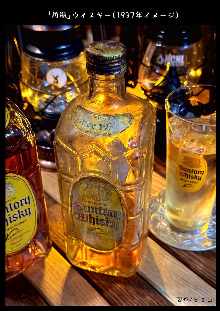 【88年前の角瓶?🥃】 今日はウイスキーキャット漫画の 最新話を描きながら空き瓶を使って 『88年前の角瓶が蔵から発掘された…!?』 をイメージして趣味のDIYしてみましたわ サントリー「角瓶」誕生は1937年10月8日 変わらない亀甲デザインが好きなのよね インテリアとして作ってはいかがかしら?