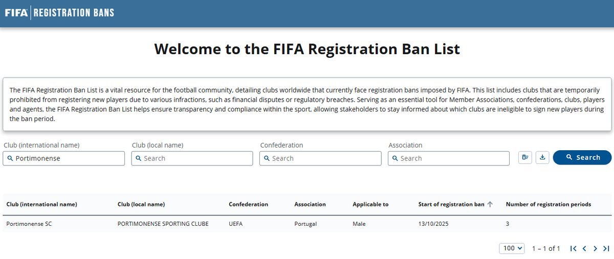 日本でもお馴染みのポルトガル2部ポルティモネンセSCが、今後3回の移籍市場での補強禁止処分を下され、昨日からFIFA登録禁止リストに登場。 pic.x.com/bUY8N6zB9T