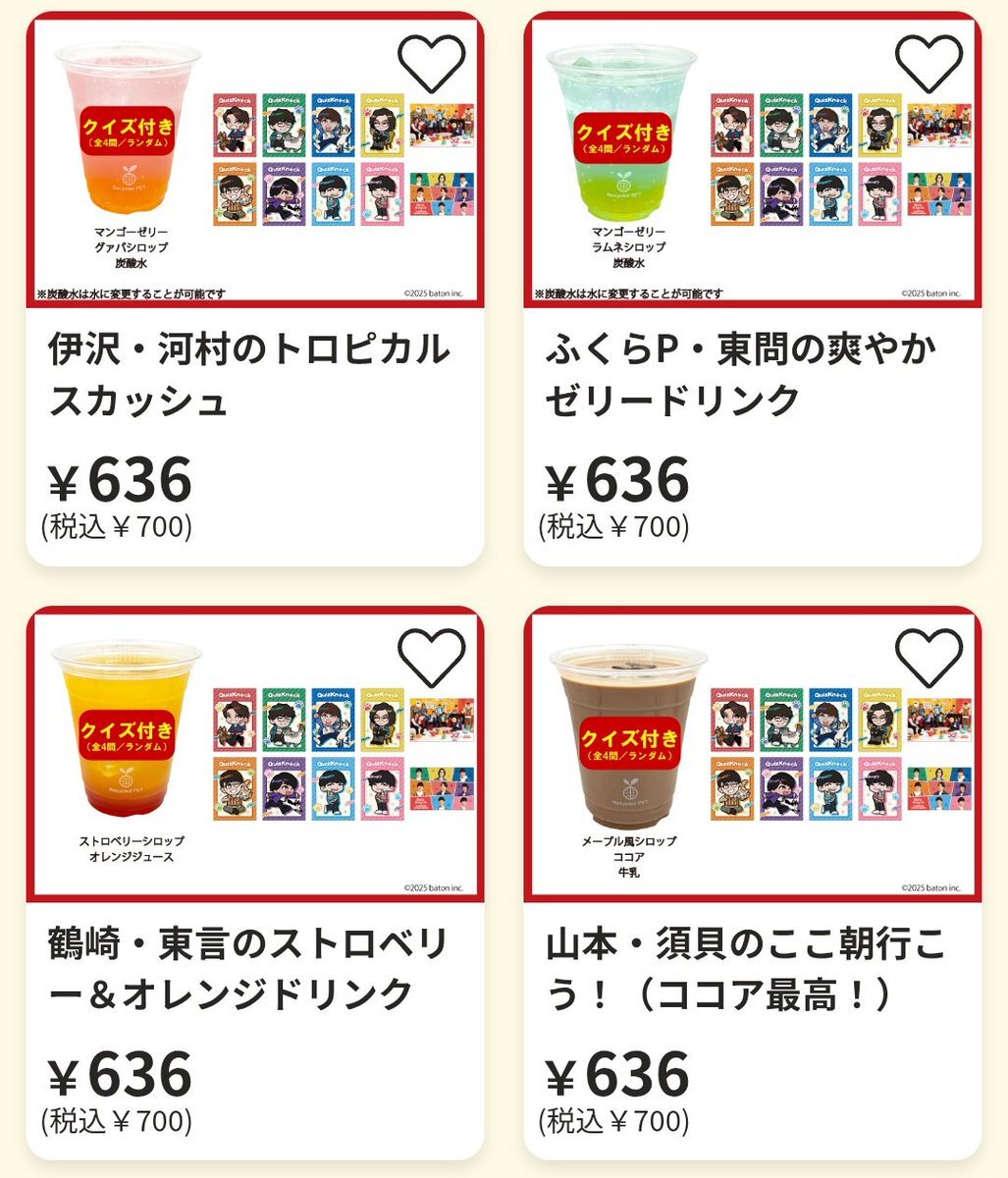 個人的めっちゃ爆笑した話なんだけど、まねきねこのとある店舗でふくらさん問さんのドリンクと、鶴崎さん言さんのドリンクを頼んだら、伊沢さん河村さんのドリンクと山本さん須貝さんの頼んでない2つが届きました!そーう言うのもまた楽しい